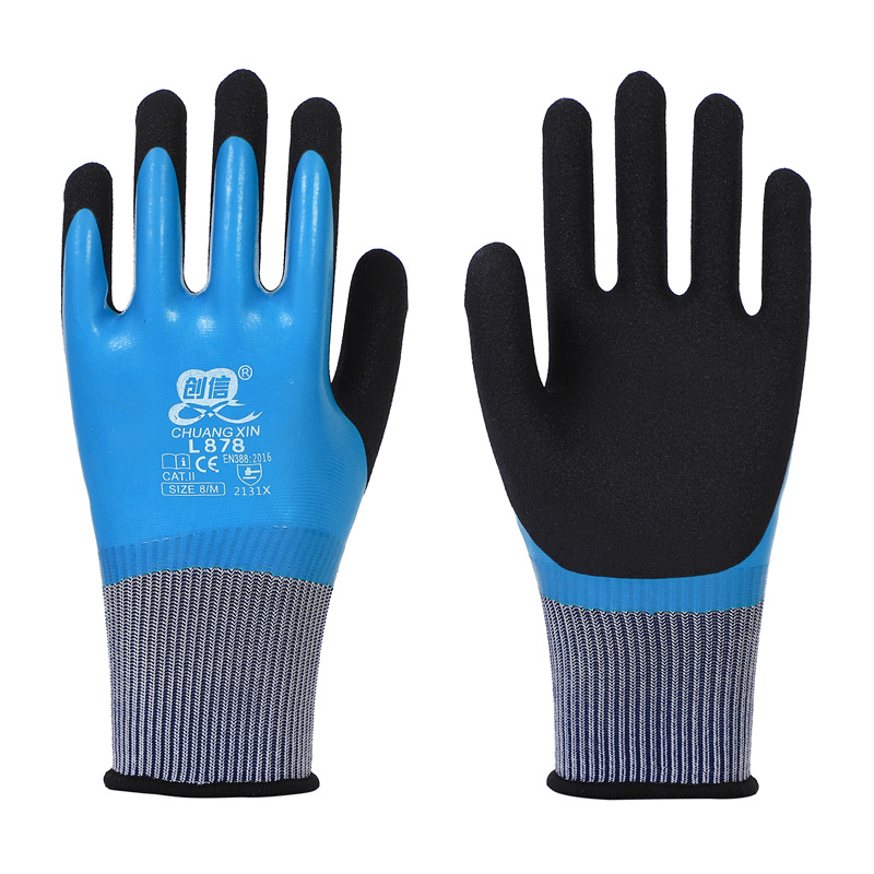 Chuangxin L878 이중층 방수 라텍스 폼 가득 차있는 담근 보호 장갑 미끄럼 방지 보호 장갑 도매스토어 가기