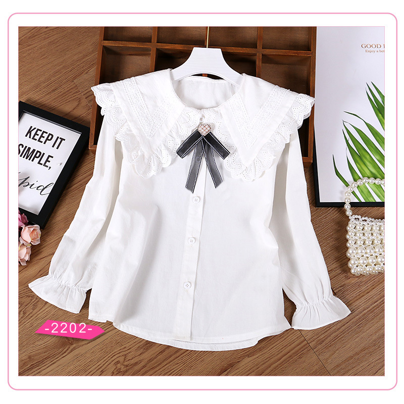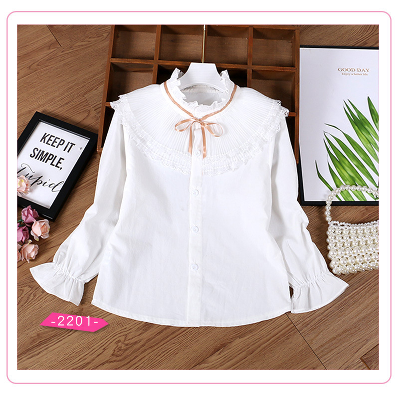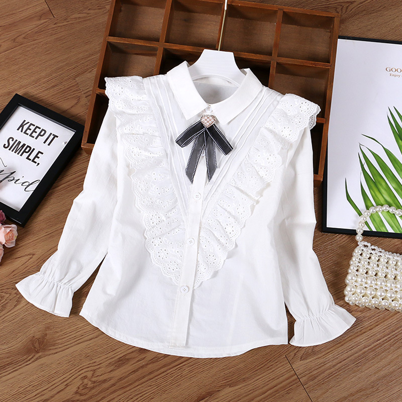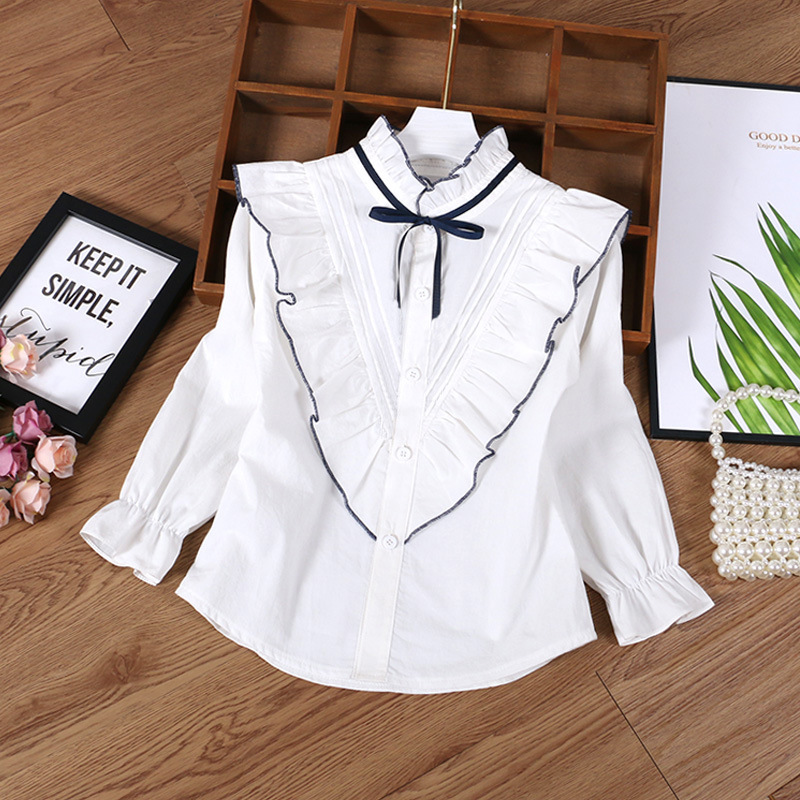 여자 긴팔 셔츠 봄과 가을 새로운 스타일 중대형 어린이 스타일 셔츠 학생 면화 레이스 옷깃 탑 국경