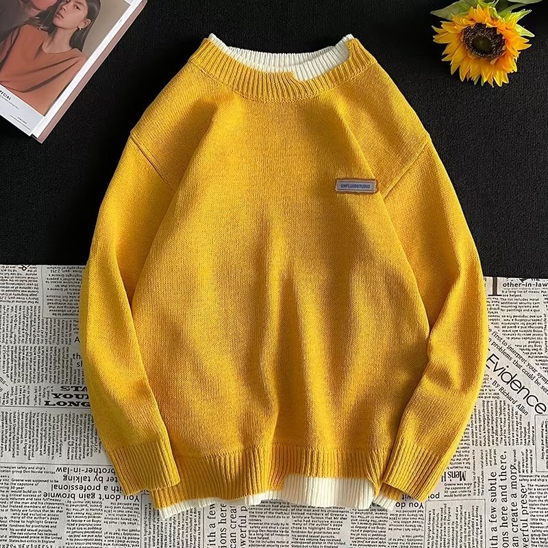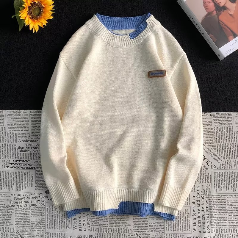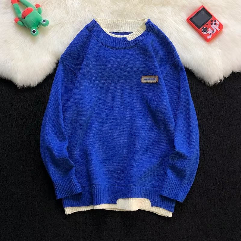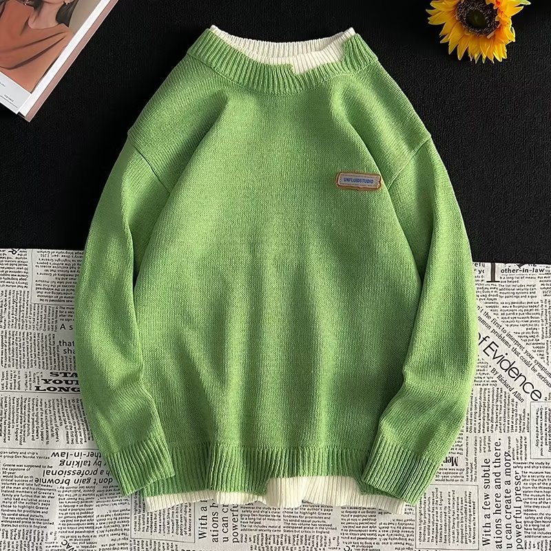 공장 직공급 가짜 투피스 캐주얼 크루넥 스웨터 남성용 트렌디 한 풀오버 긴팔 루즈한 일본 스웨터 겨울 트렌드스토어 가기