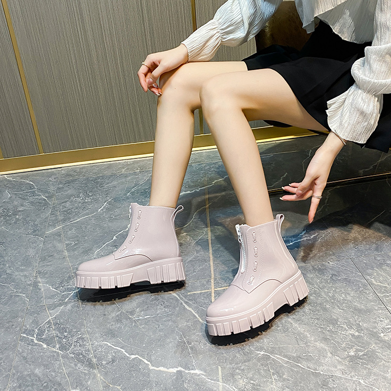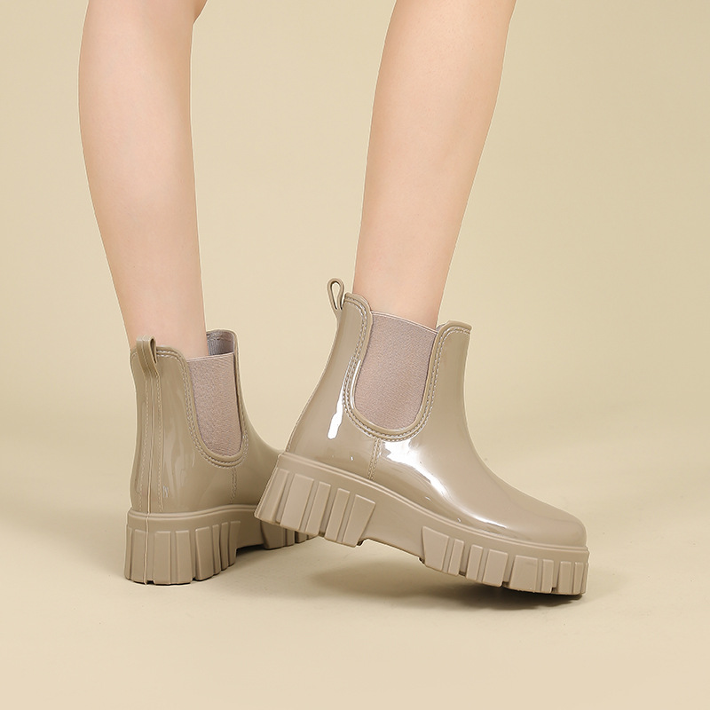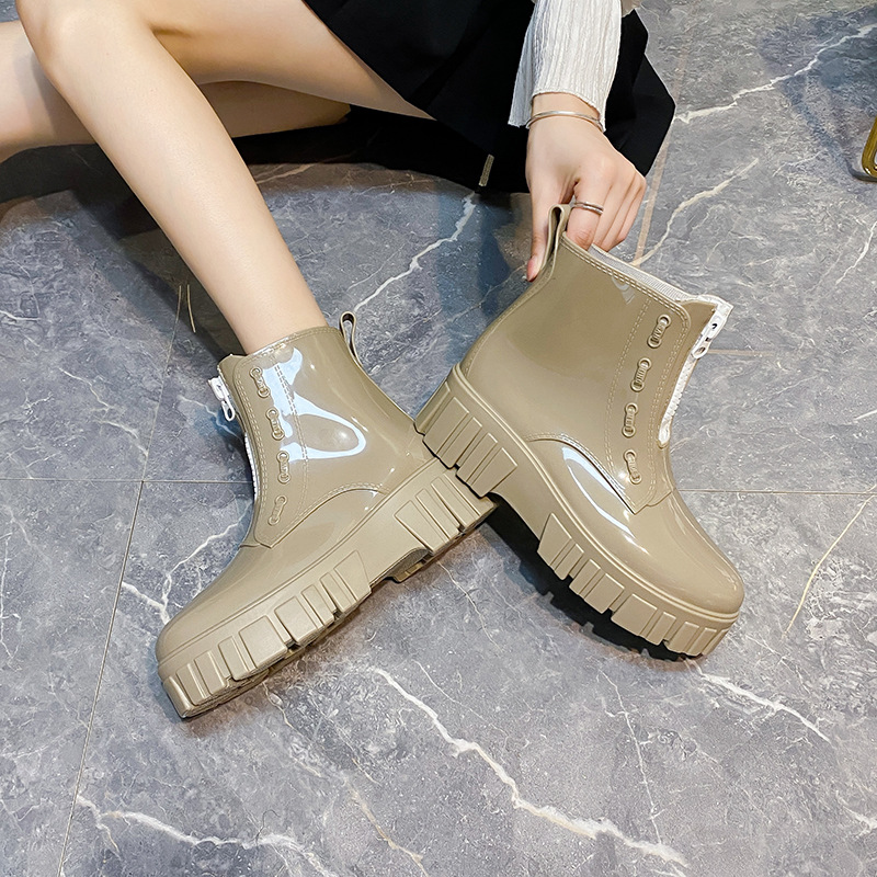 한국 짧은 튜브 성인 여성의 패션 겉옷 장화 귀여운 방수 신발 미끄럼 방지 여성 장화 두꺼운 단독 고무 신발