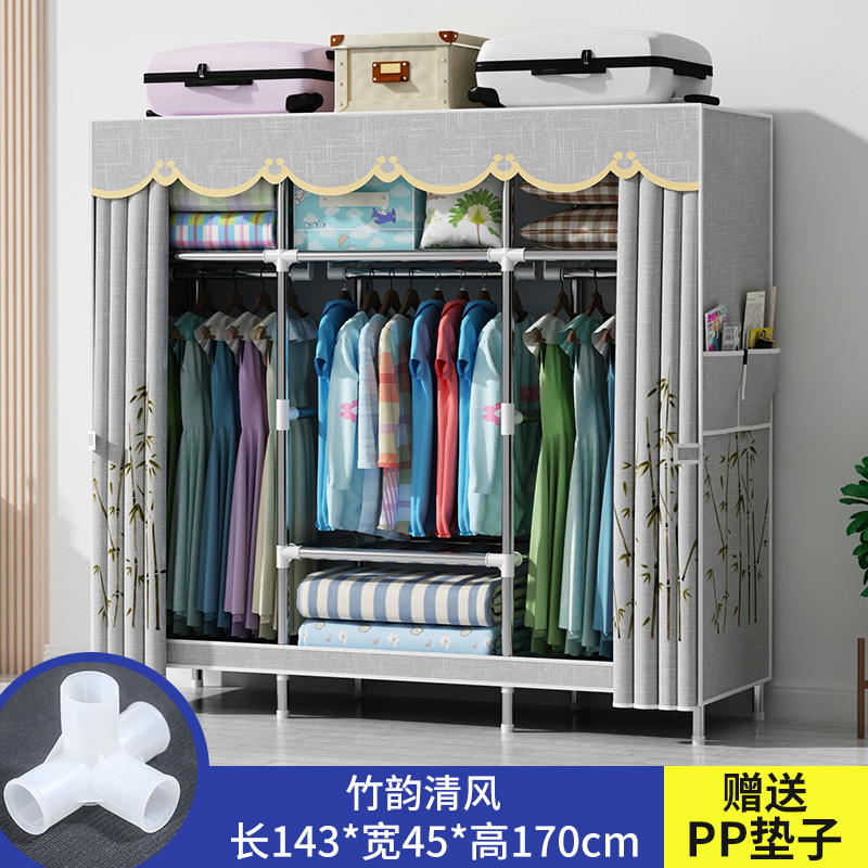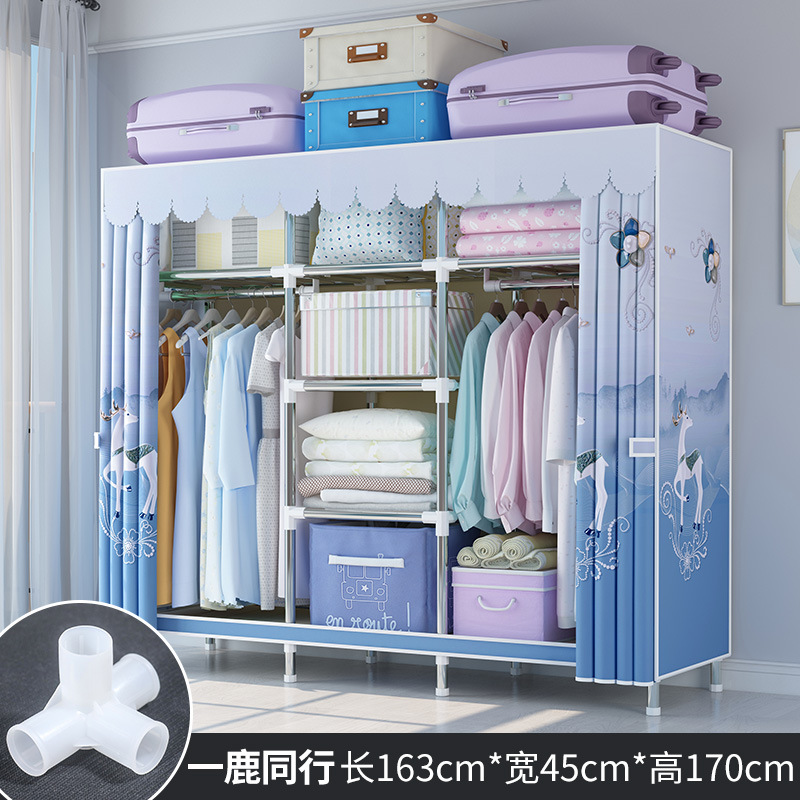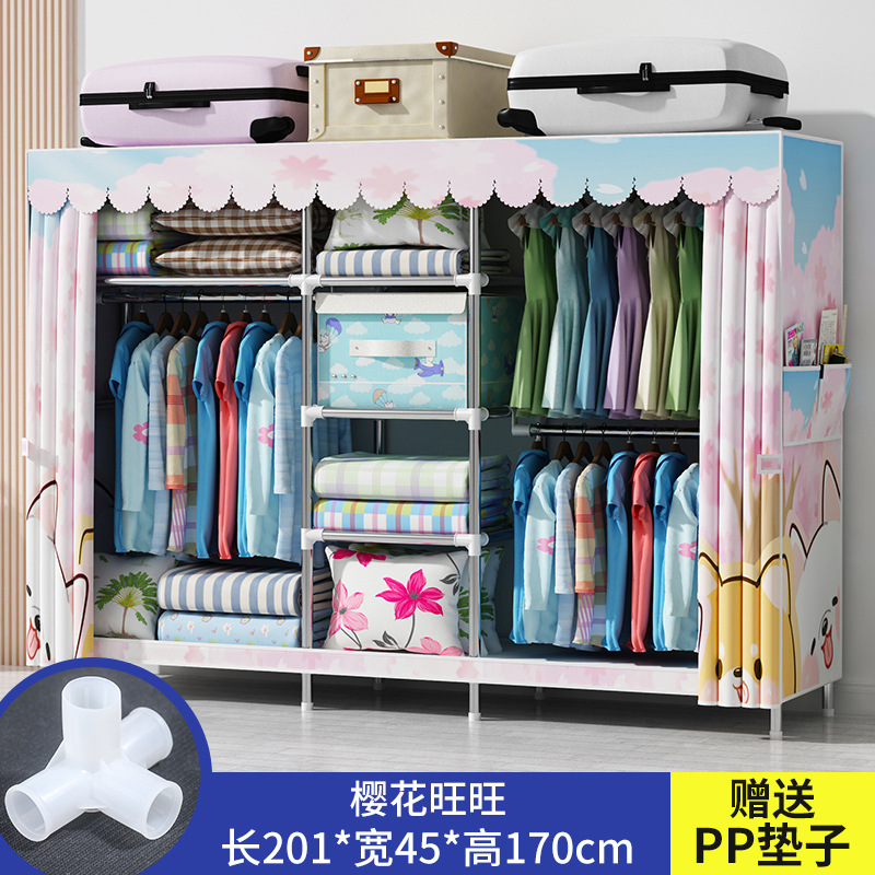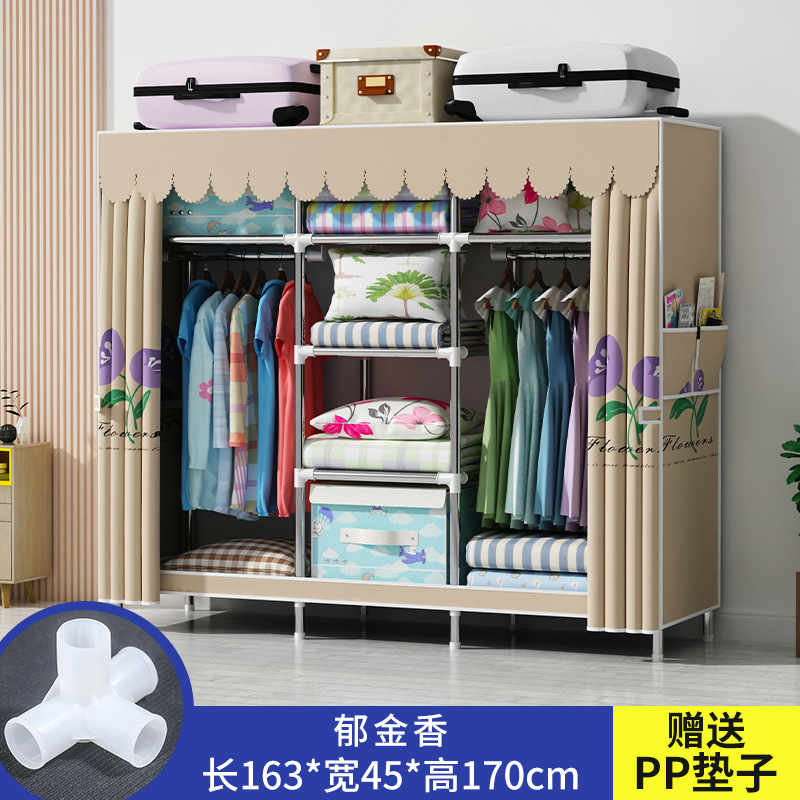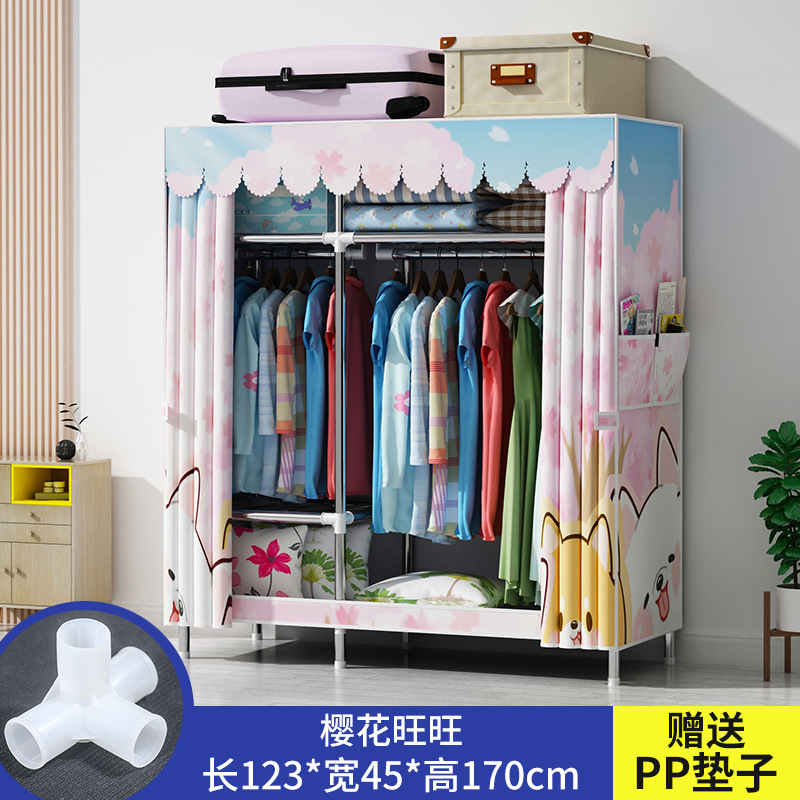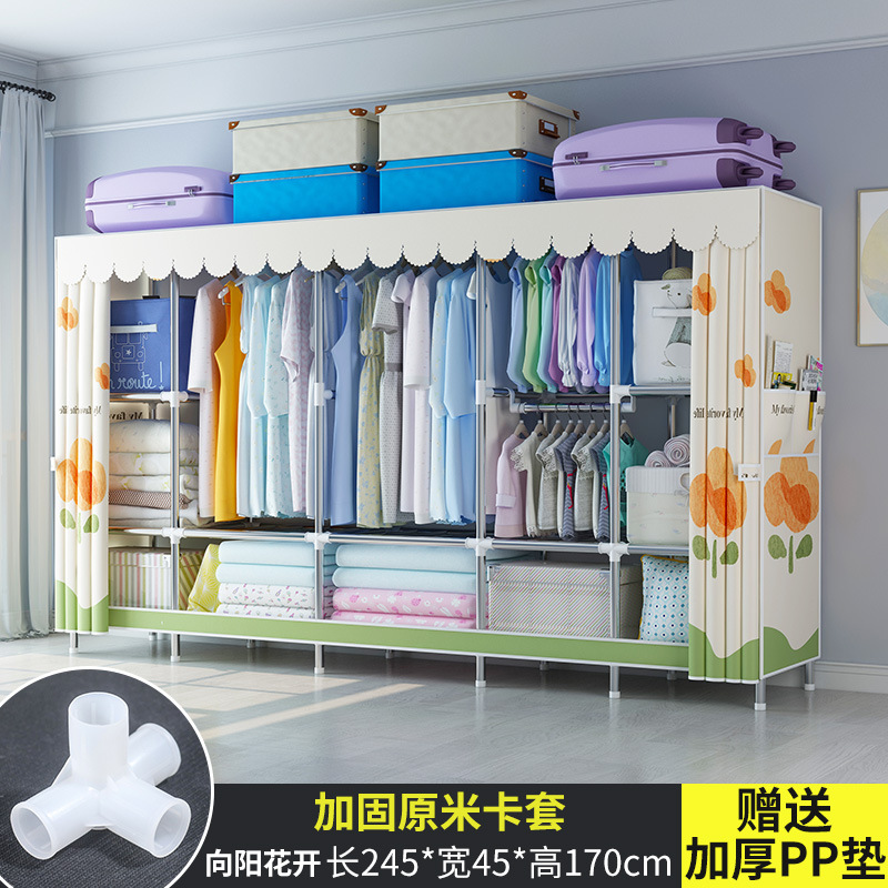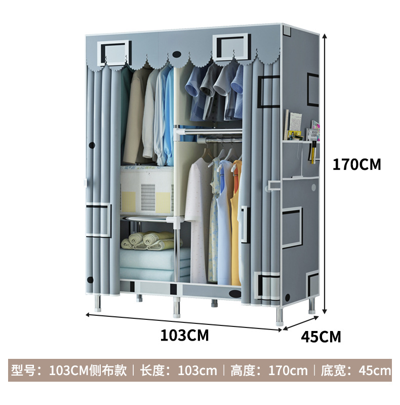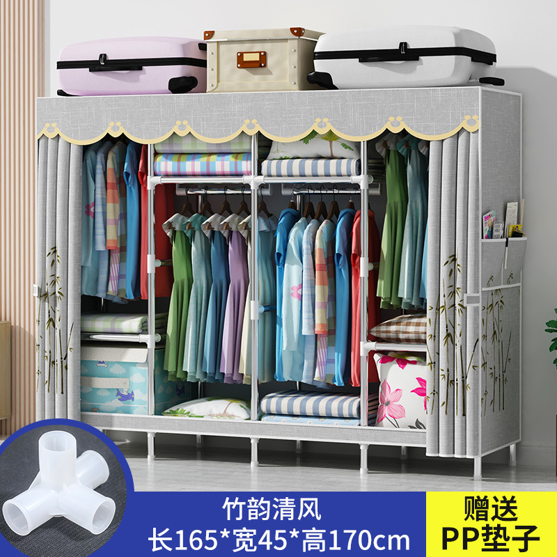 임대실을위한 간단한 옷장 옷감 간단한 조립 가정용 침실 캐비닛 두꺼운 강화 옷걸이 바닥 수직