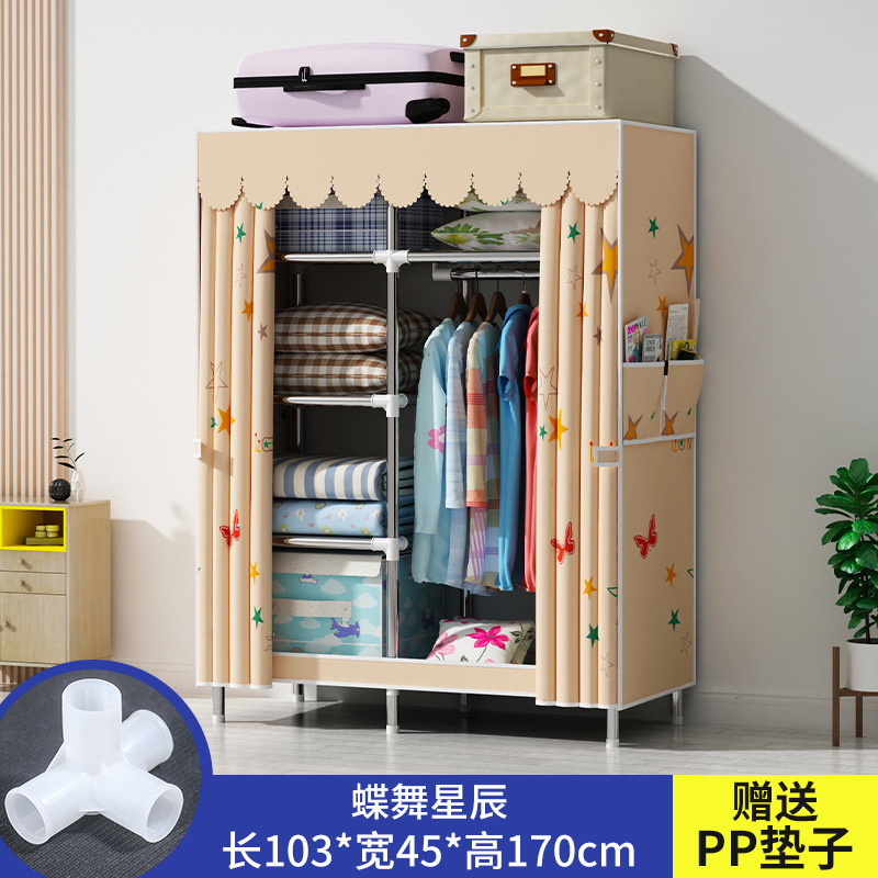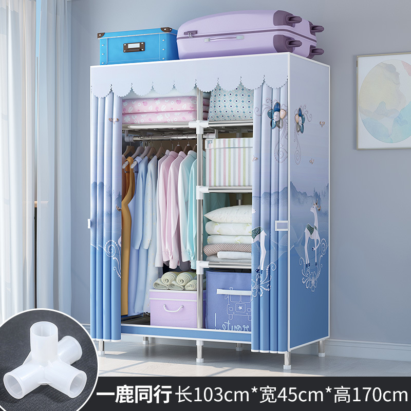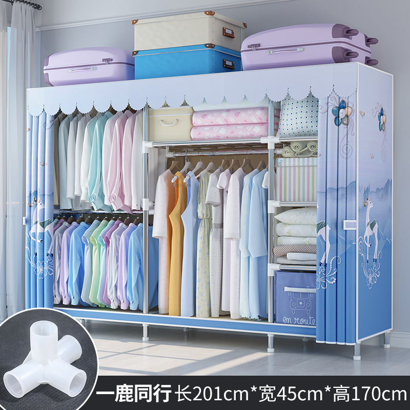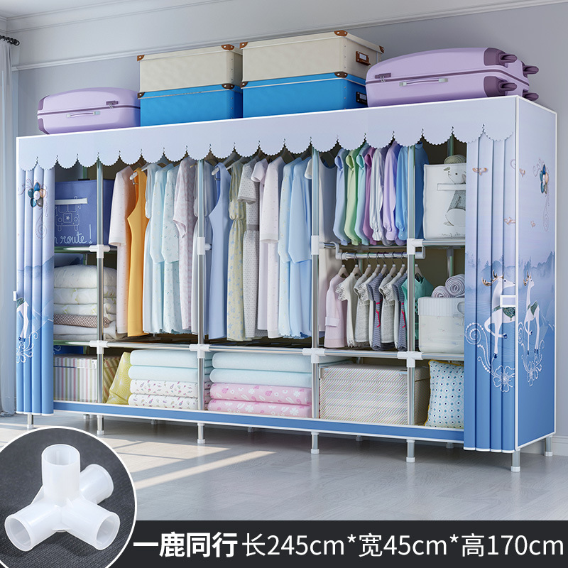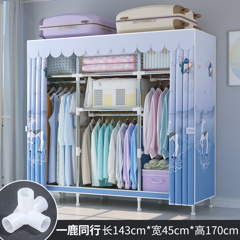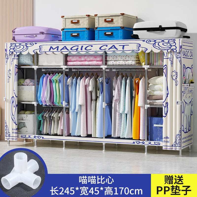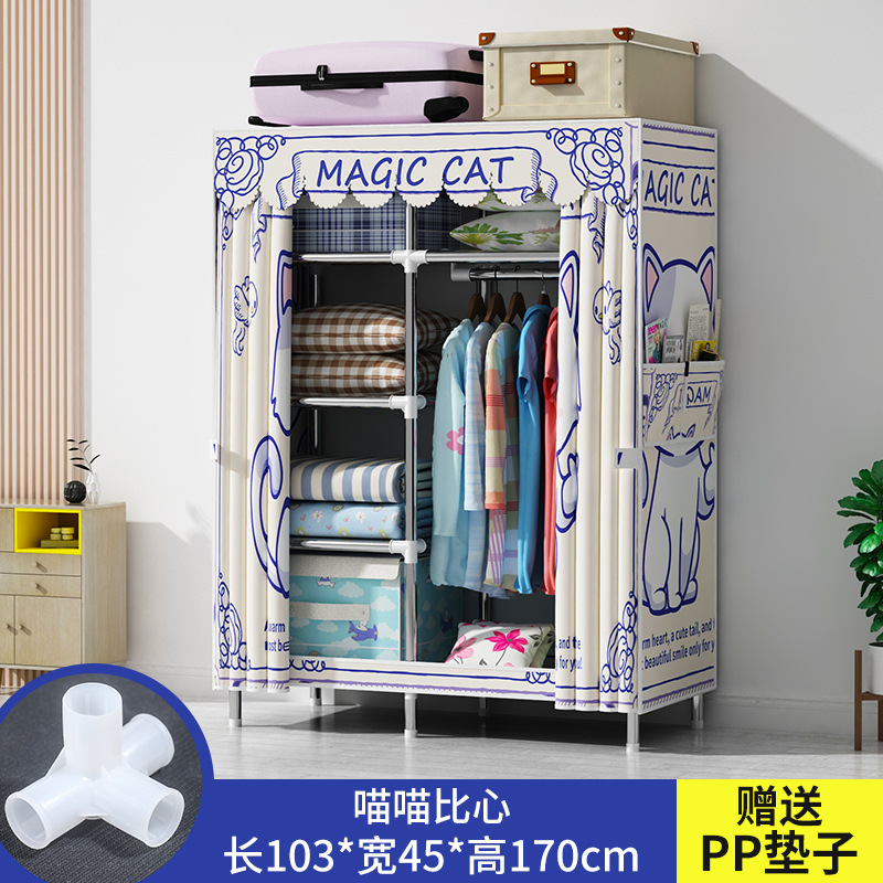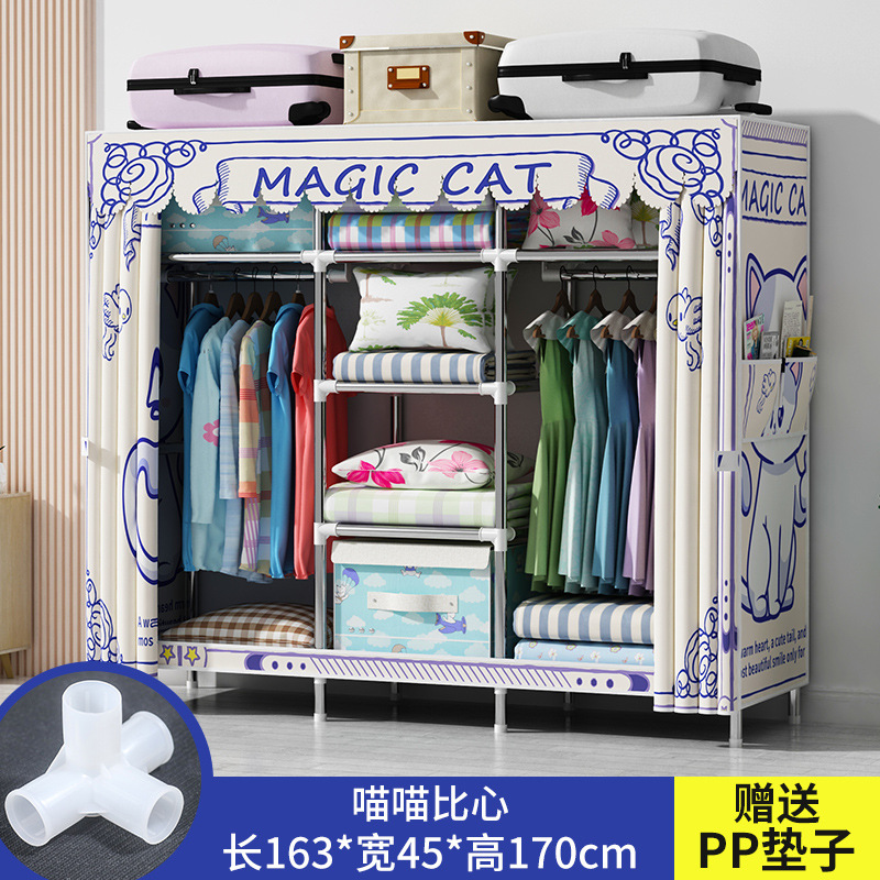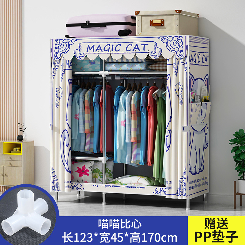 임대실을위한 간단한 옷장 옷감 간단한 조립 가정용 침실 캐비닛 두꺼운 강화 옷걸이 바닥 수직