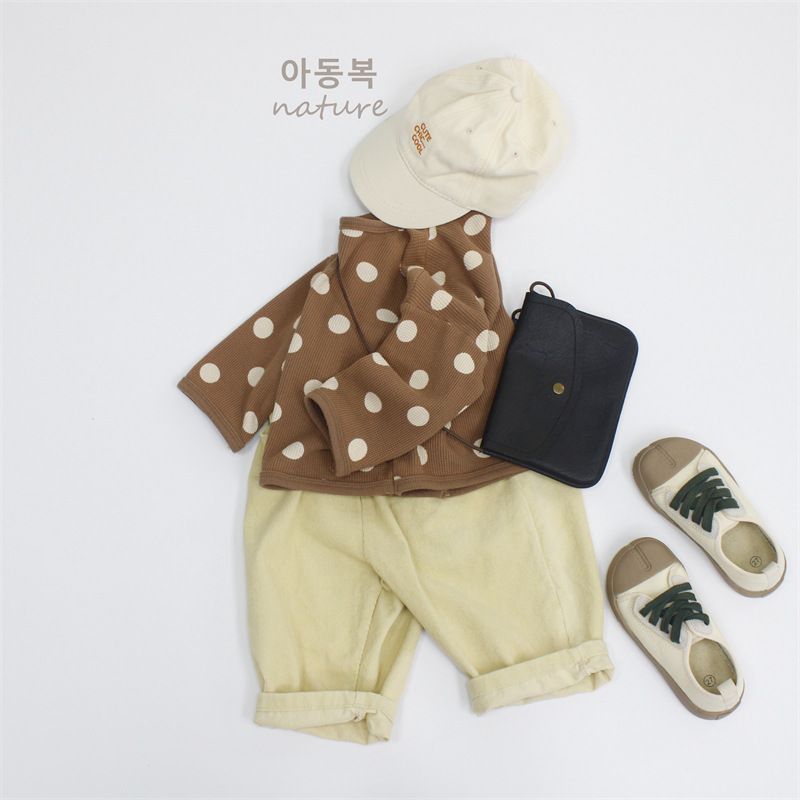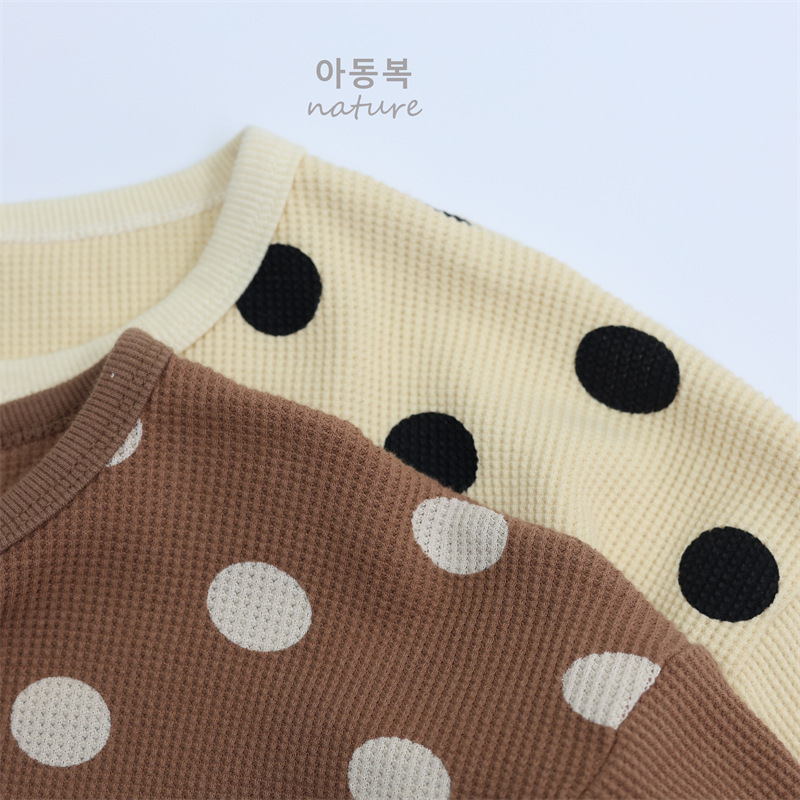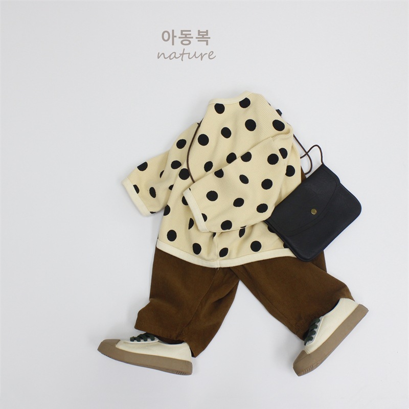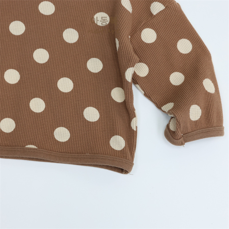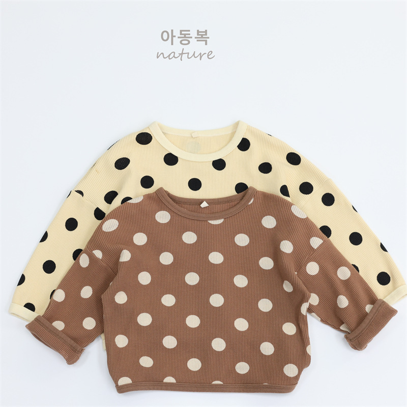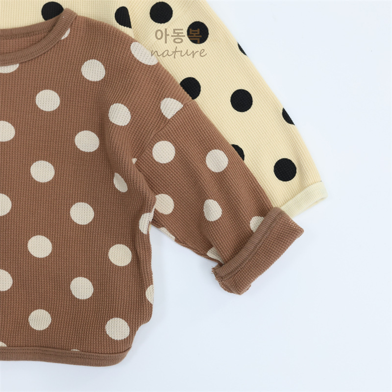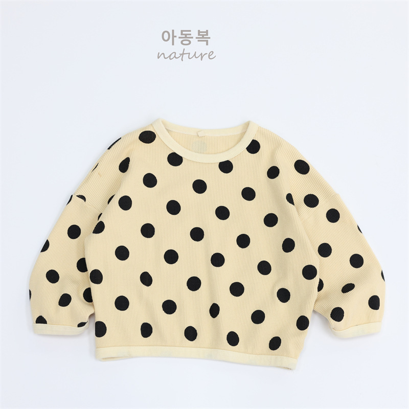 2025 가을 아동 티셔츠 여아 풀오버 라운드넥 긴팔 한국 스타일 루즈핏 도트무늬 남아 상의 도매스토어 가기