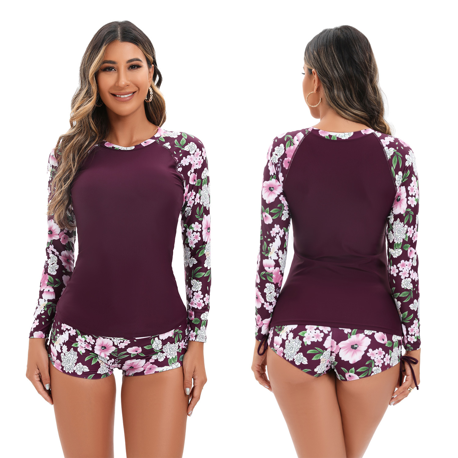 여자 투피스 수영복 긴소매 스플릿 태양 보호 서핑 세트 아마존 복서 태양 보호 세트 유럽과 미국 다이빙 세트스토어 가기