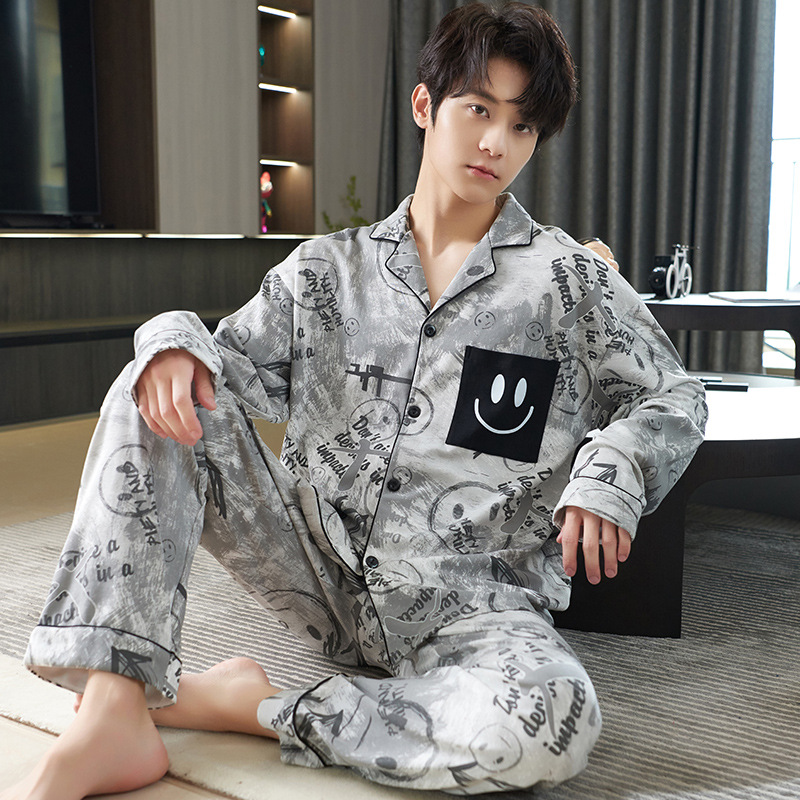 커플 잠옷 면 긴 소매 얇은 겉옷 입고 남자의 가을 새로운 유행 봄과 가을 여자의 가정 옷 세트스토어 가기