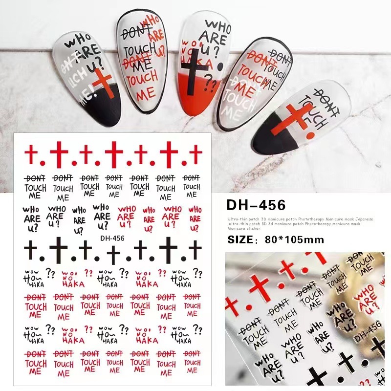 2022 네일 아트 새로운 달콤한 멋진 스타일 소녀 크로스 보더 영어 알파벳 Croheart DH-456 접착 데칼