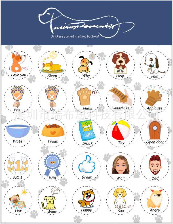 아마존 국경 도매 애완 동물 교차로 버튼 스티커 개 녹음 훈련 음성 상자 스티커스토어 가기