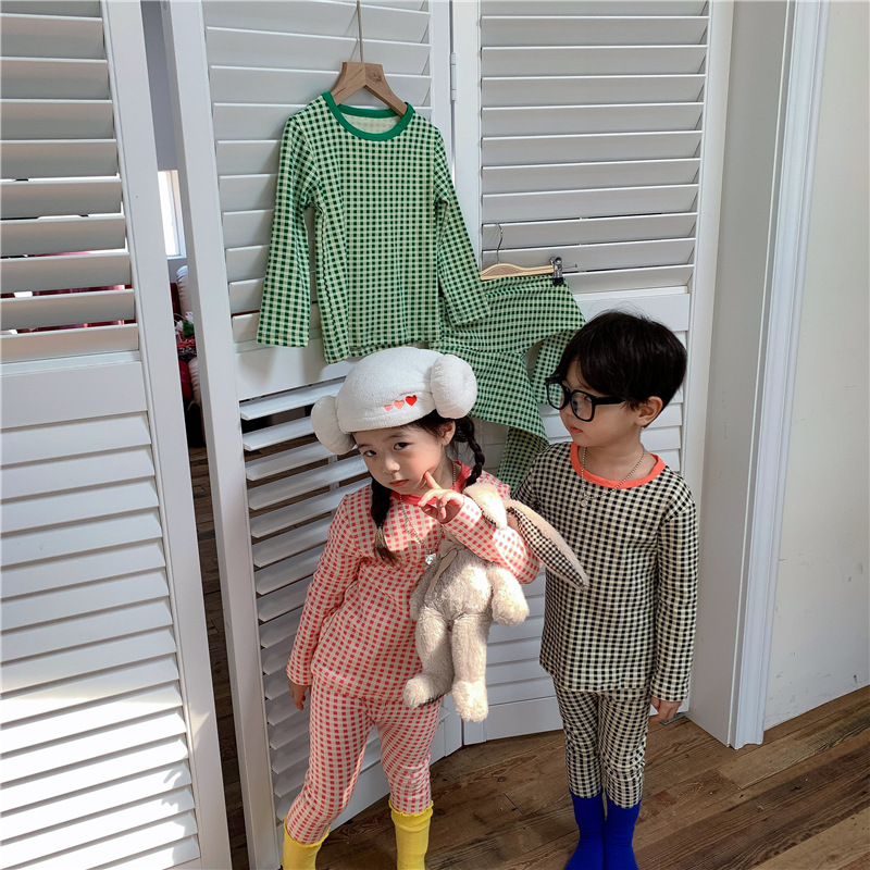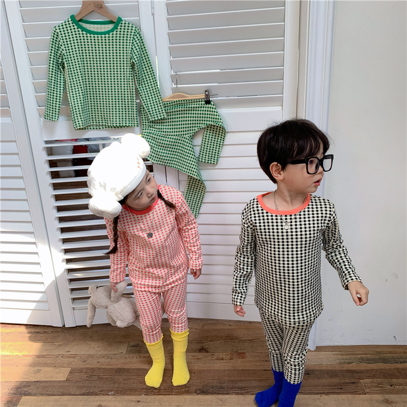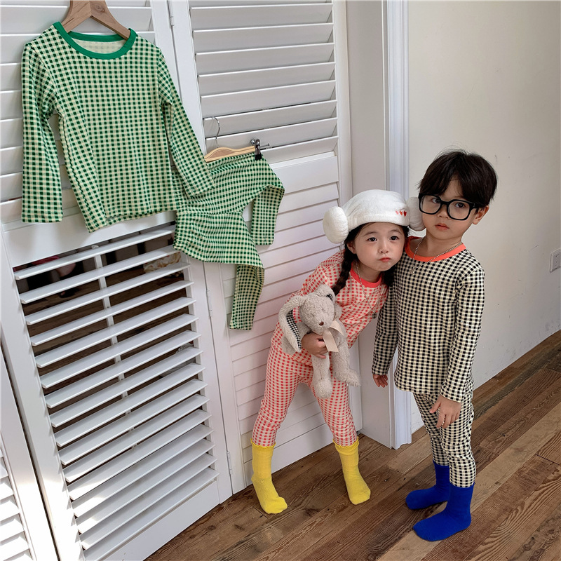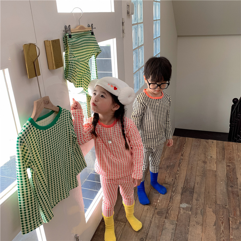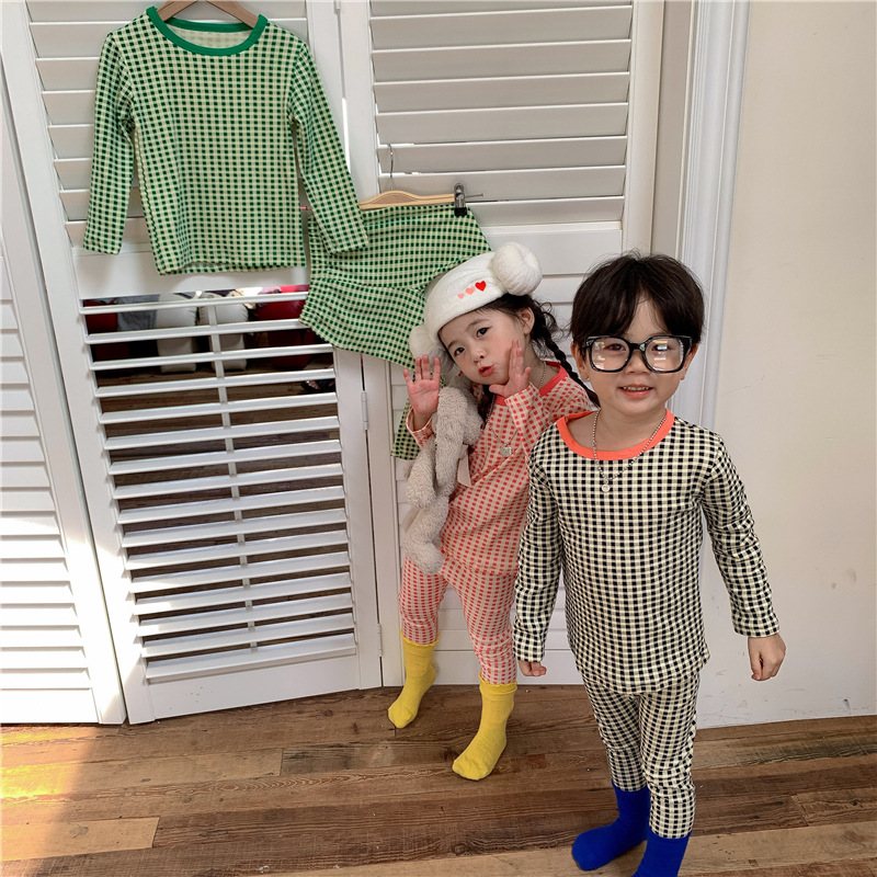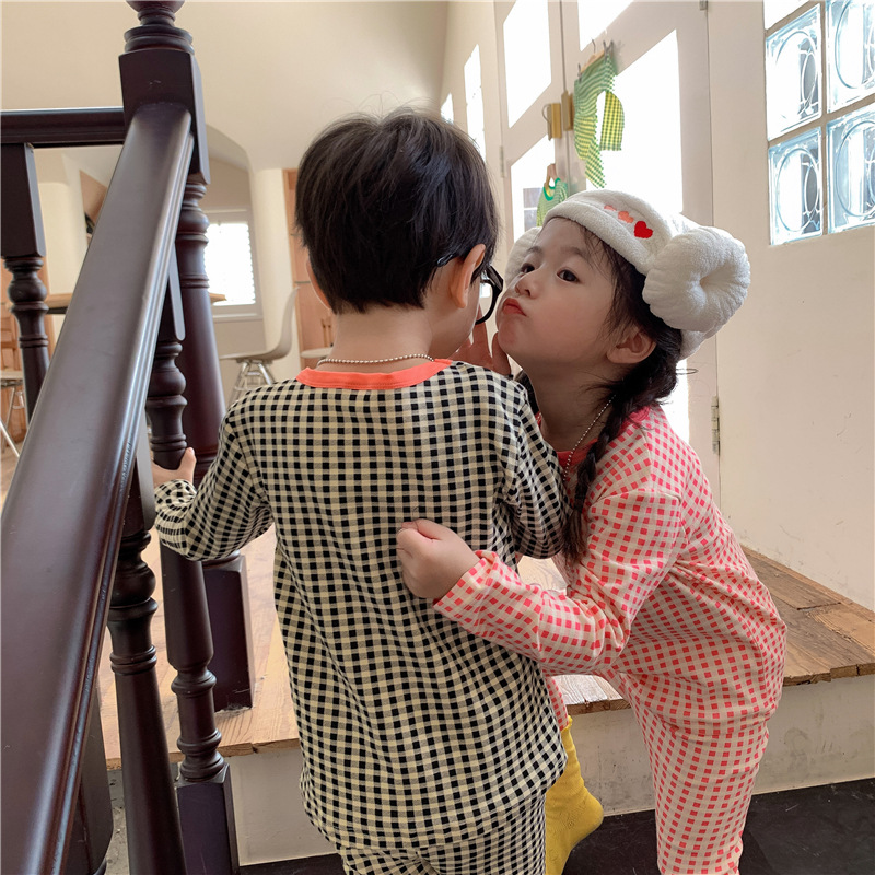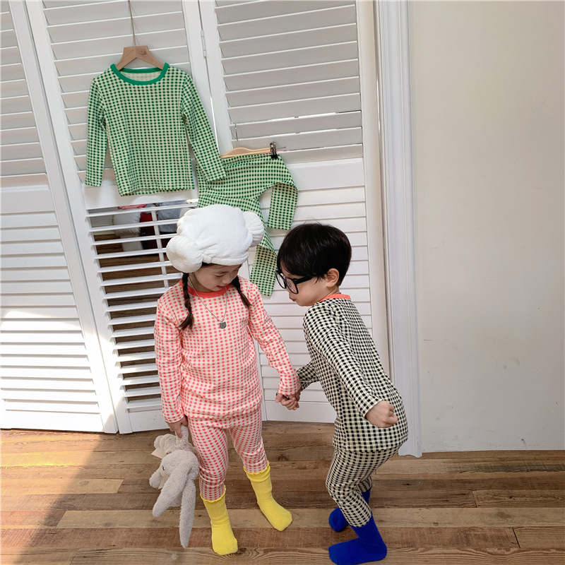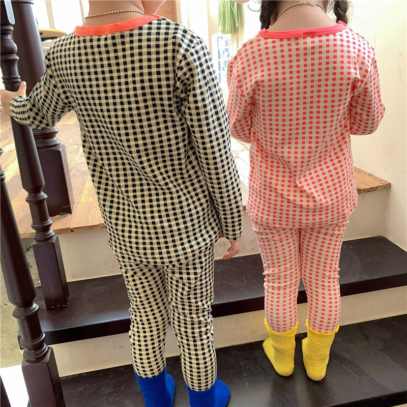 包边圆领格子秋衣秋裤长袖长裤家居服套装,居家bi备!男女宝宝都能驾驭,自留款!3色入~