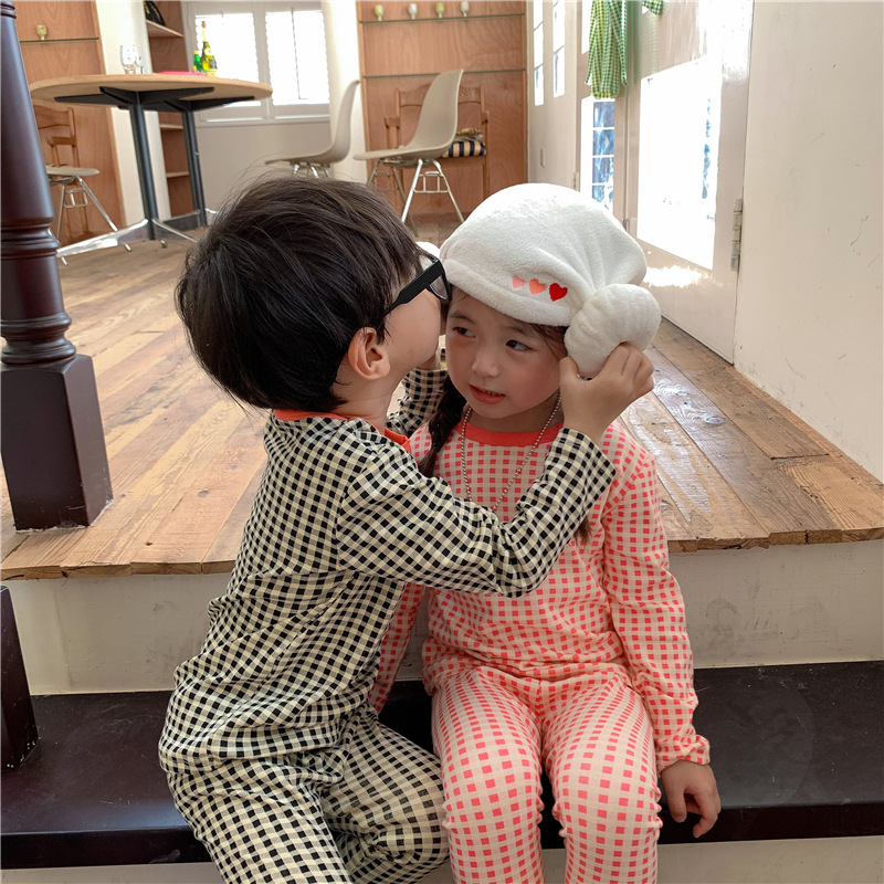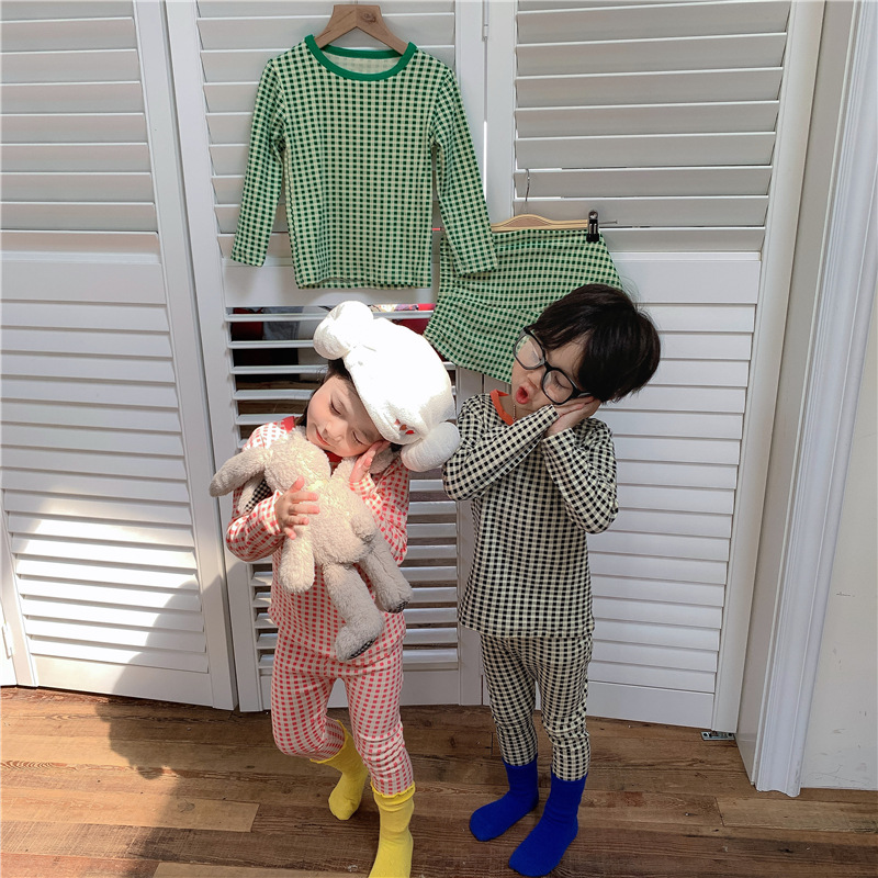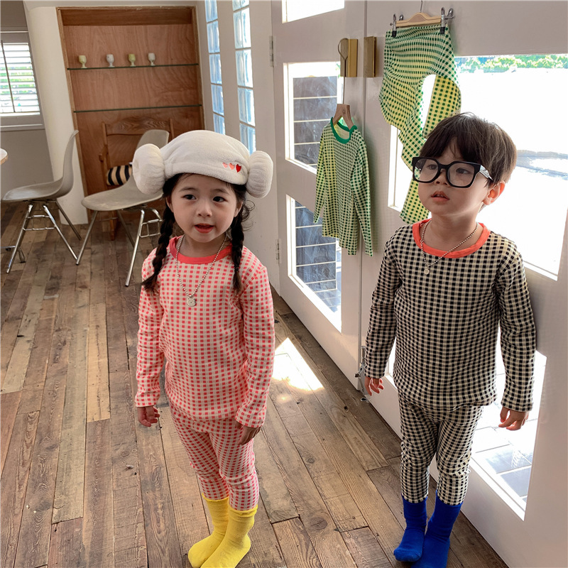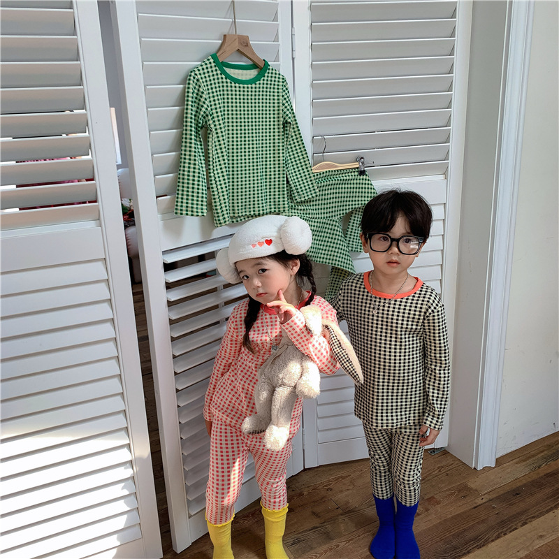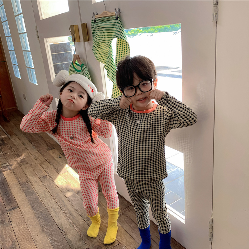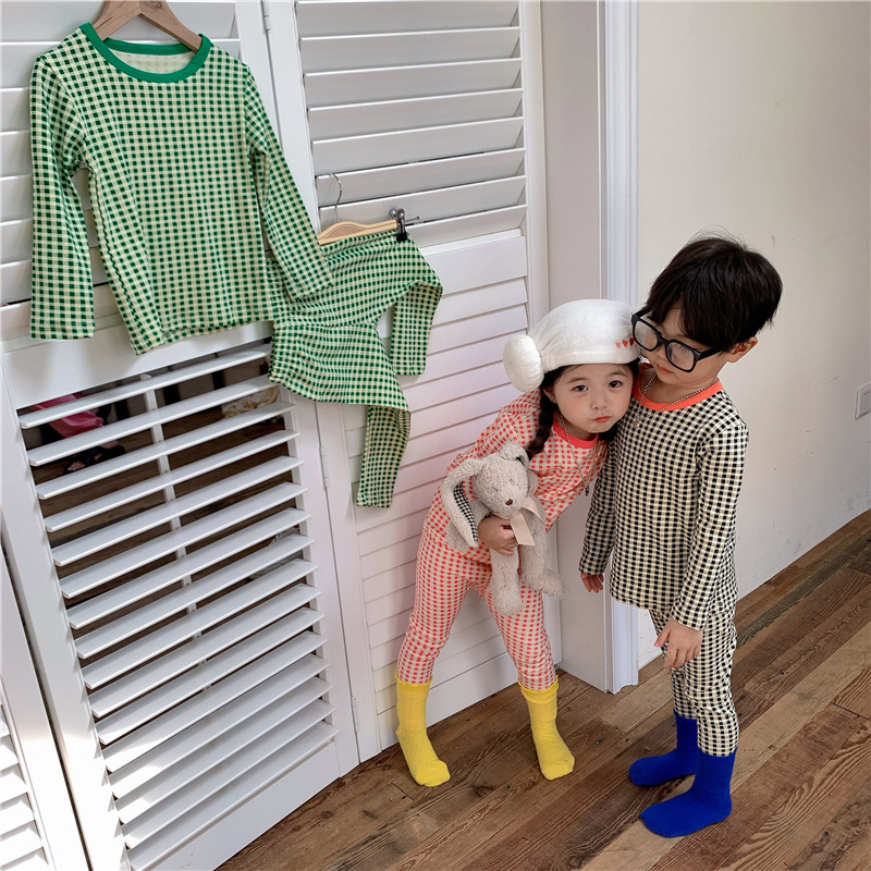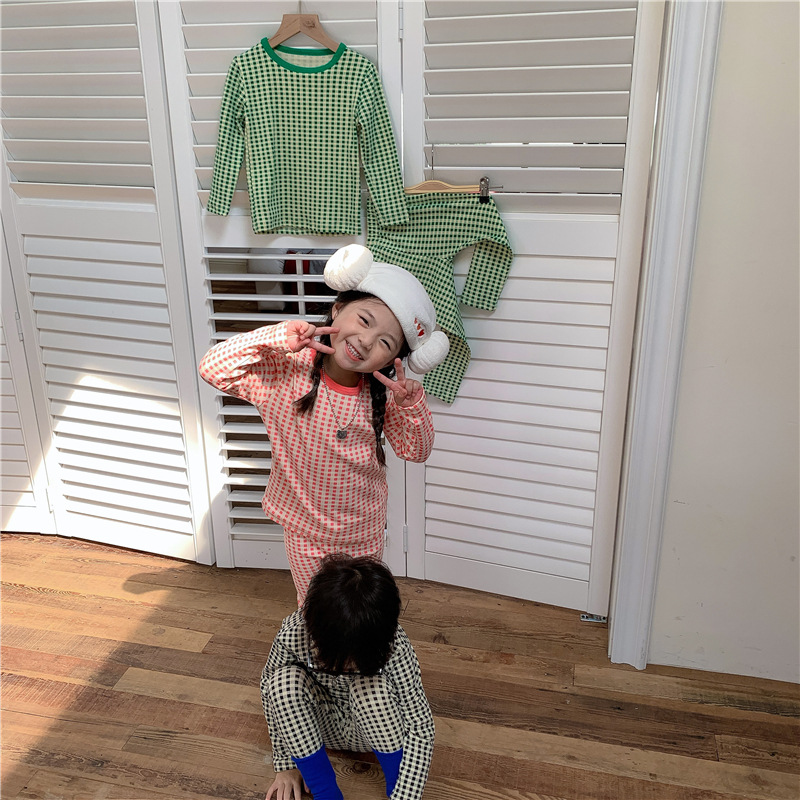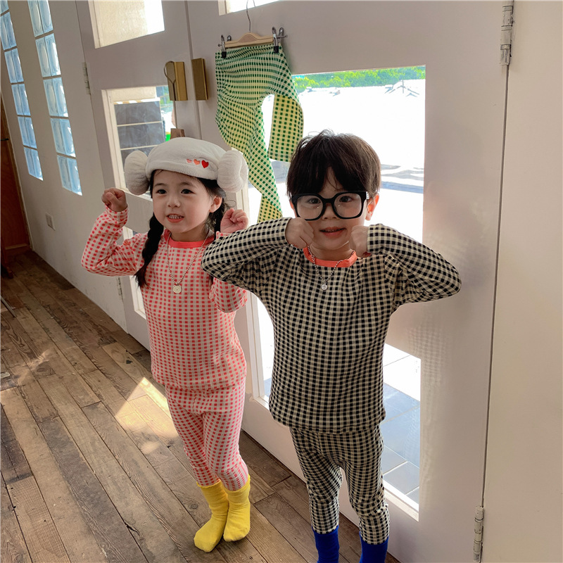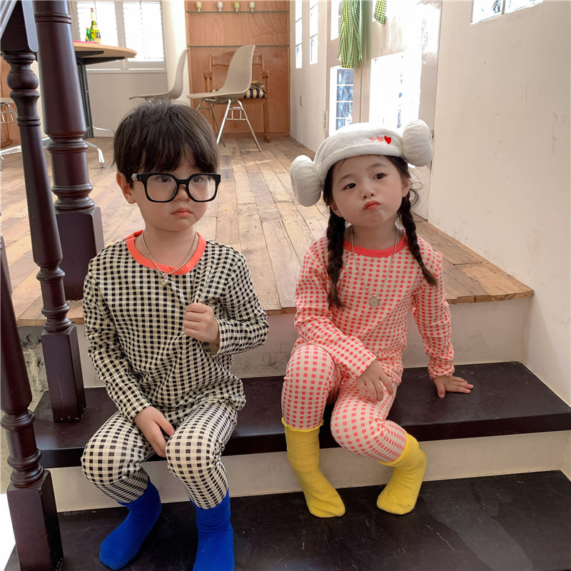 包边圆领格子秋衣秋裤长袖长裤家居服套装,居家bi备!男女宝宝都能驾驭,自留款!3色入~