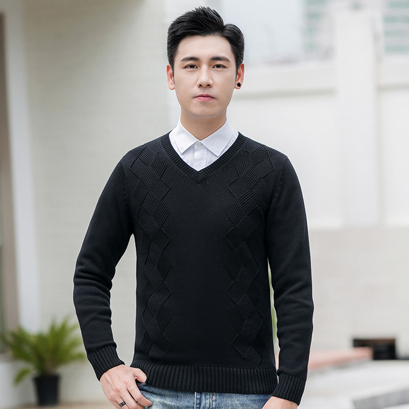 가을과 겨울 새 스웨터 남성용 V-넥 한국 스타일 단색 패션 자카드 터틀넥 슬림핏 울 스웨터 남성 패션