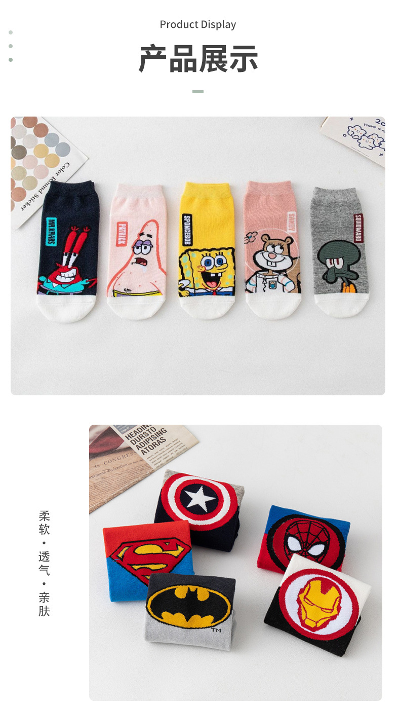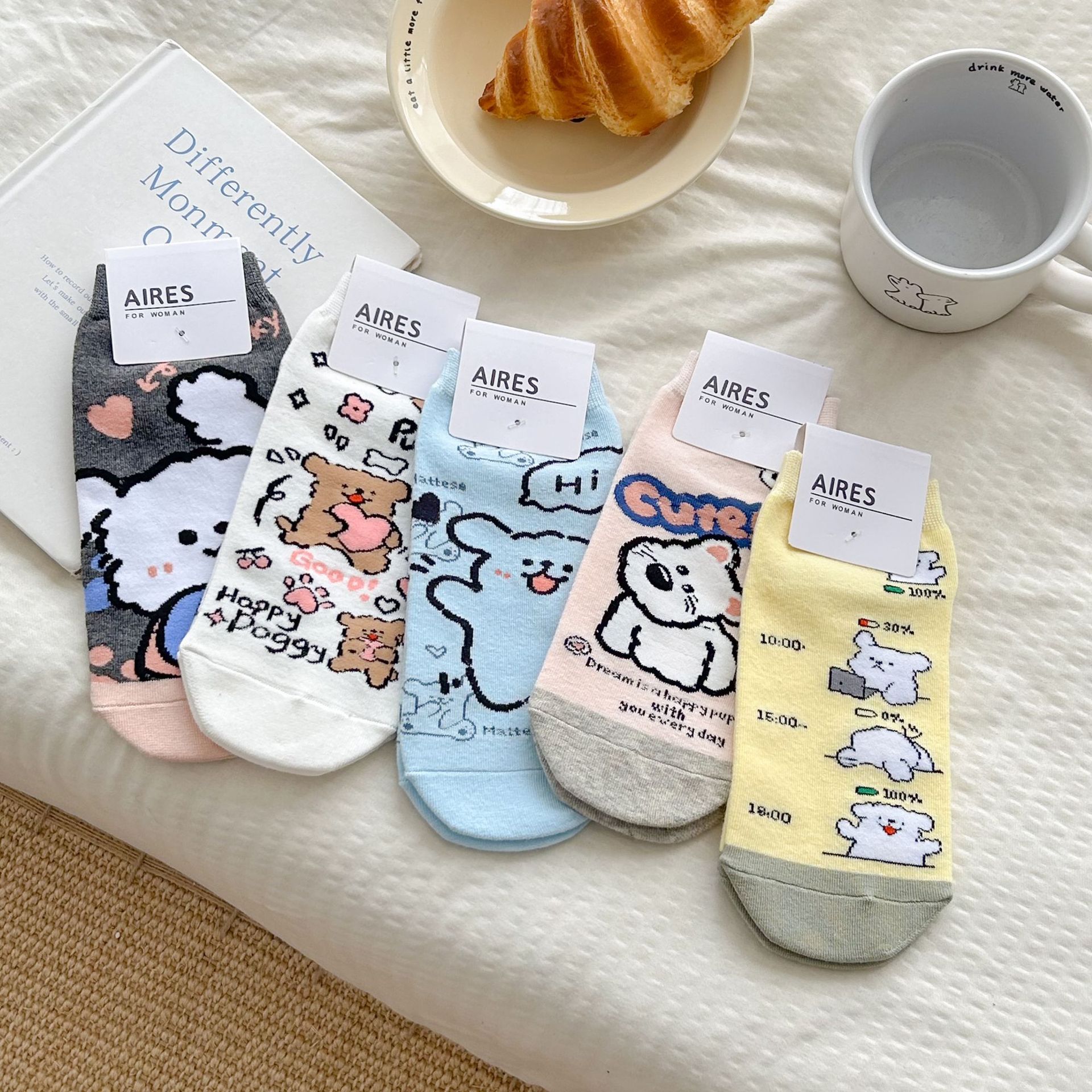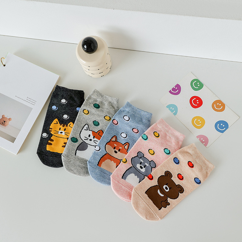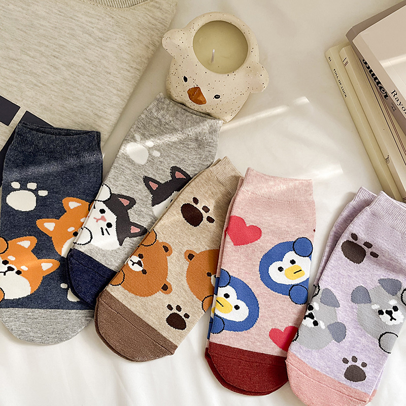 여성용 가을 만화 캐릭터 코튼 양말 짧은 양말 냄새 방지 양말 캐주얼 양말 얇은 양말 도매스토어 가기