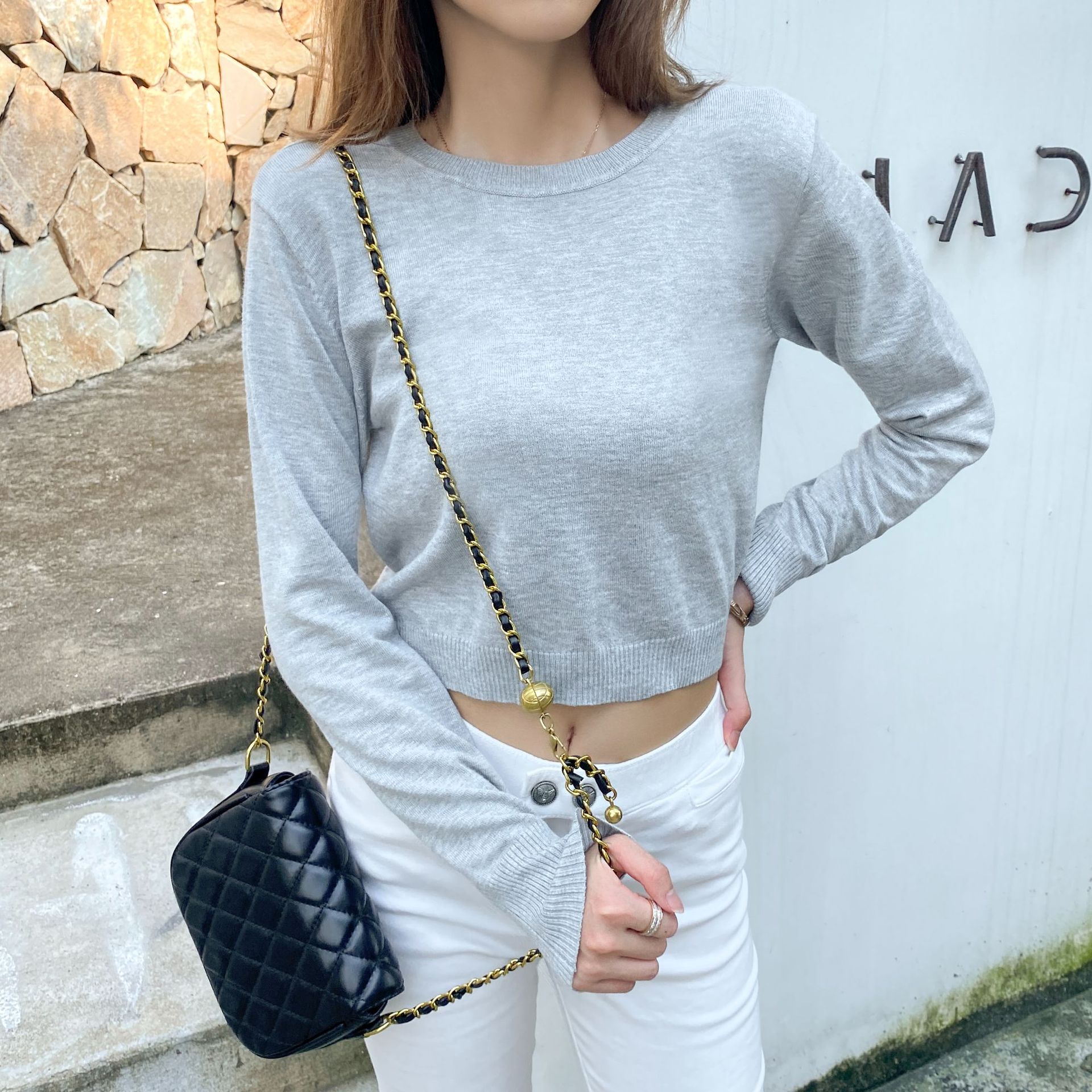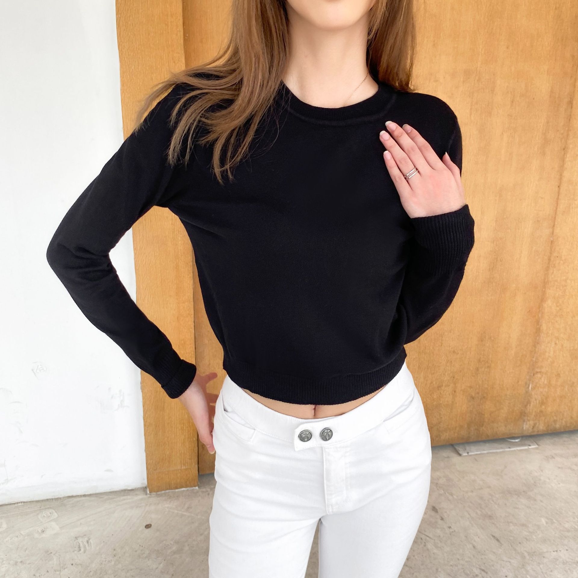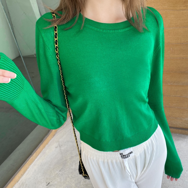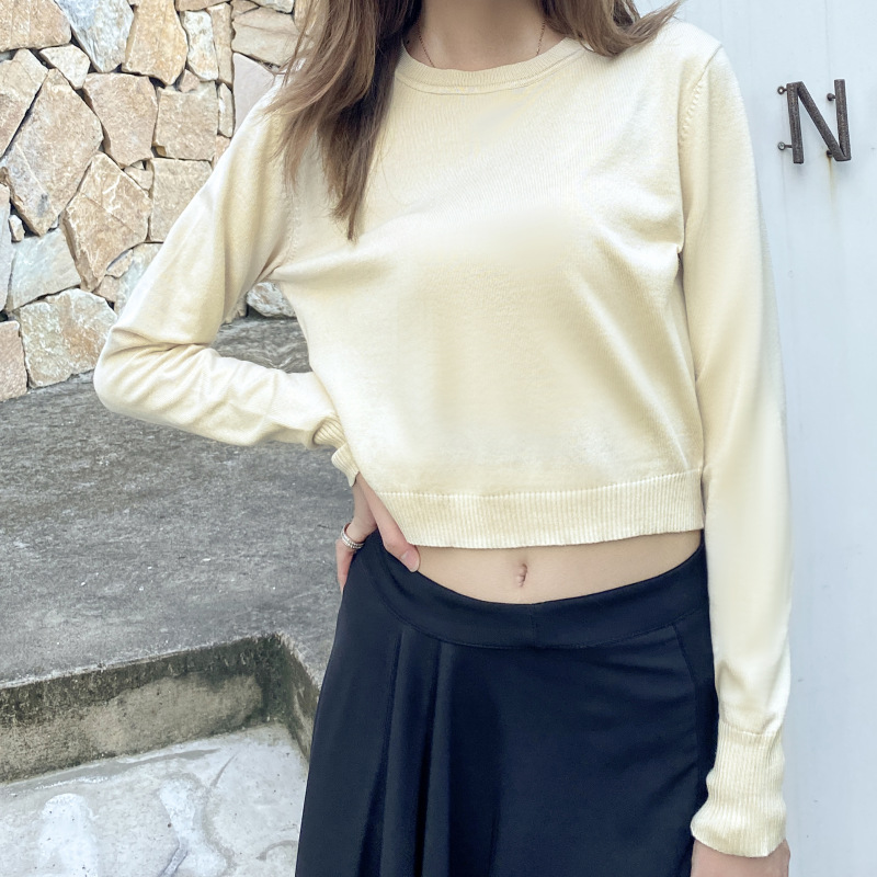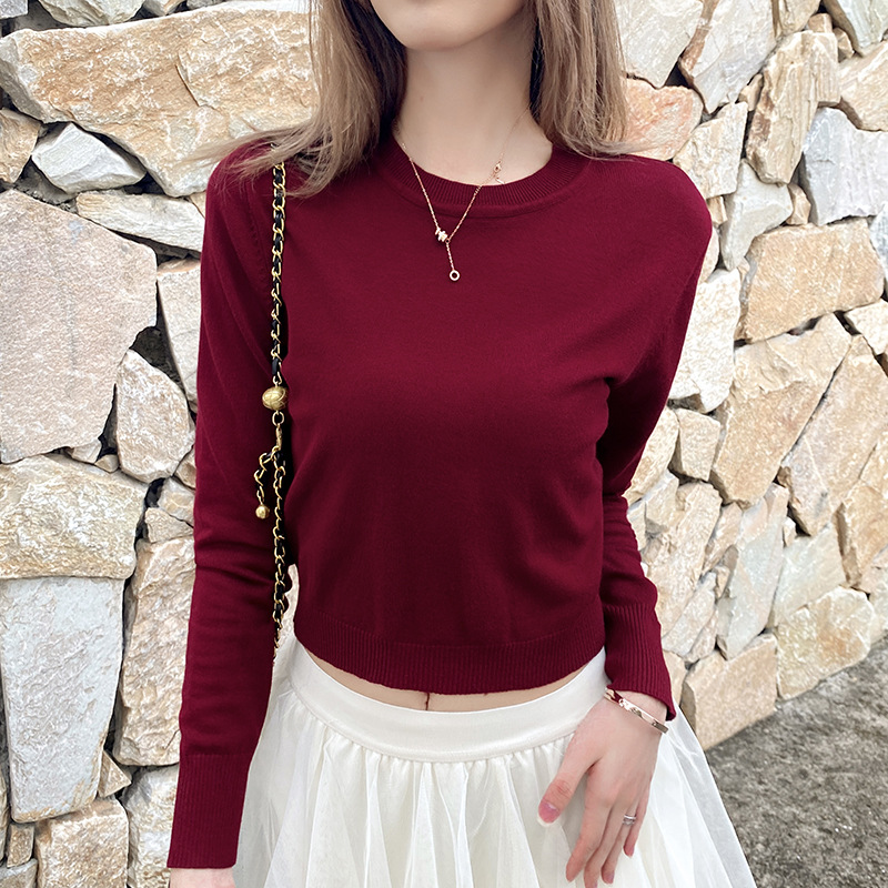 여성용 니트 스웨터 봄과 가을 새로운 풀오버 스웨터 간단한 한국어 짧은 단색 이너베이스 셔츠 싱글웨어스토어 가기
