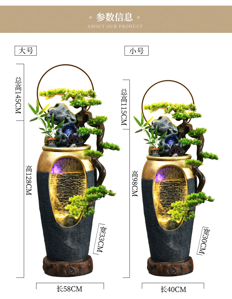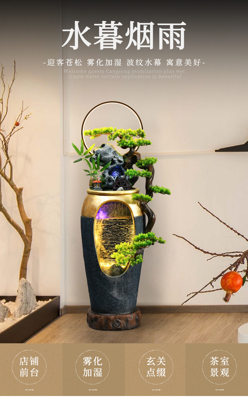 꽃병 바위 순환 물 분수 장식 정원 조경 바닥 거실 실내 점포 운세 풍경 장식스토어 가기