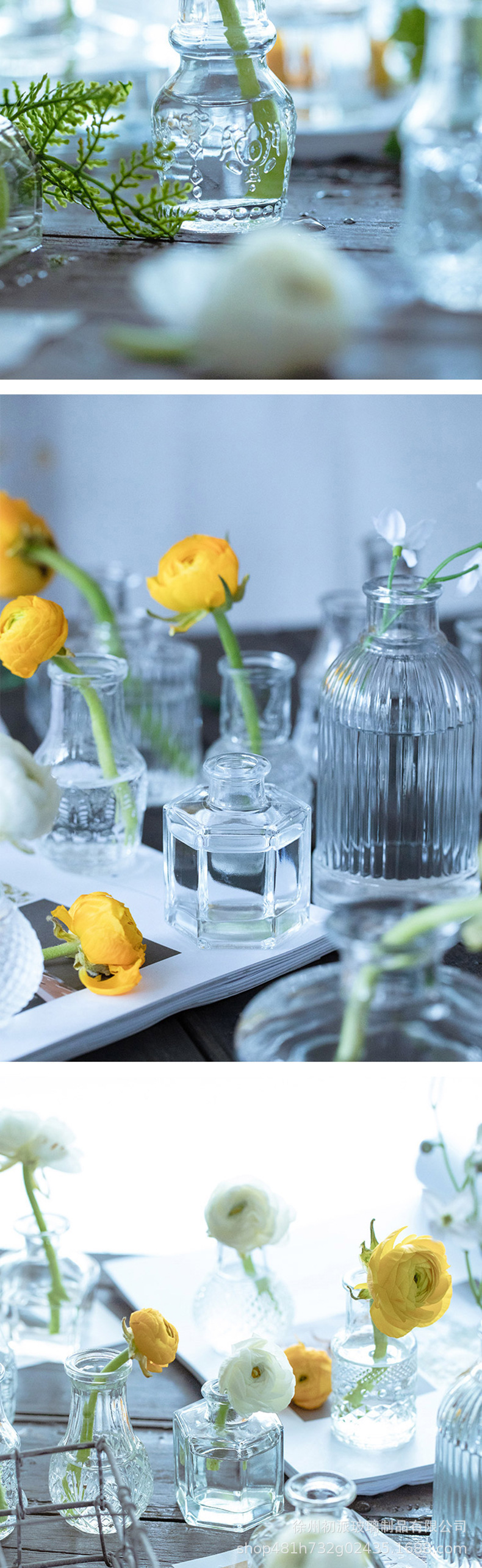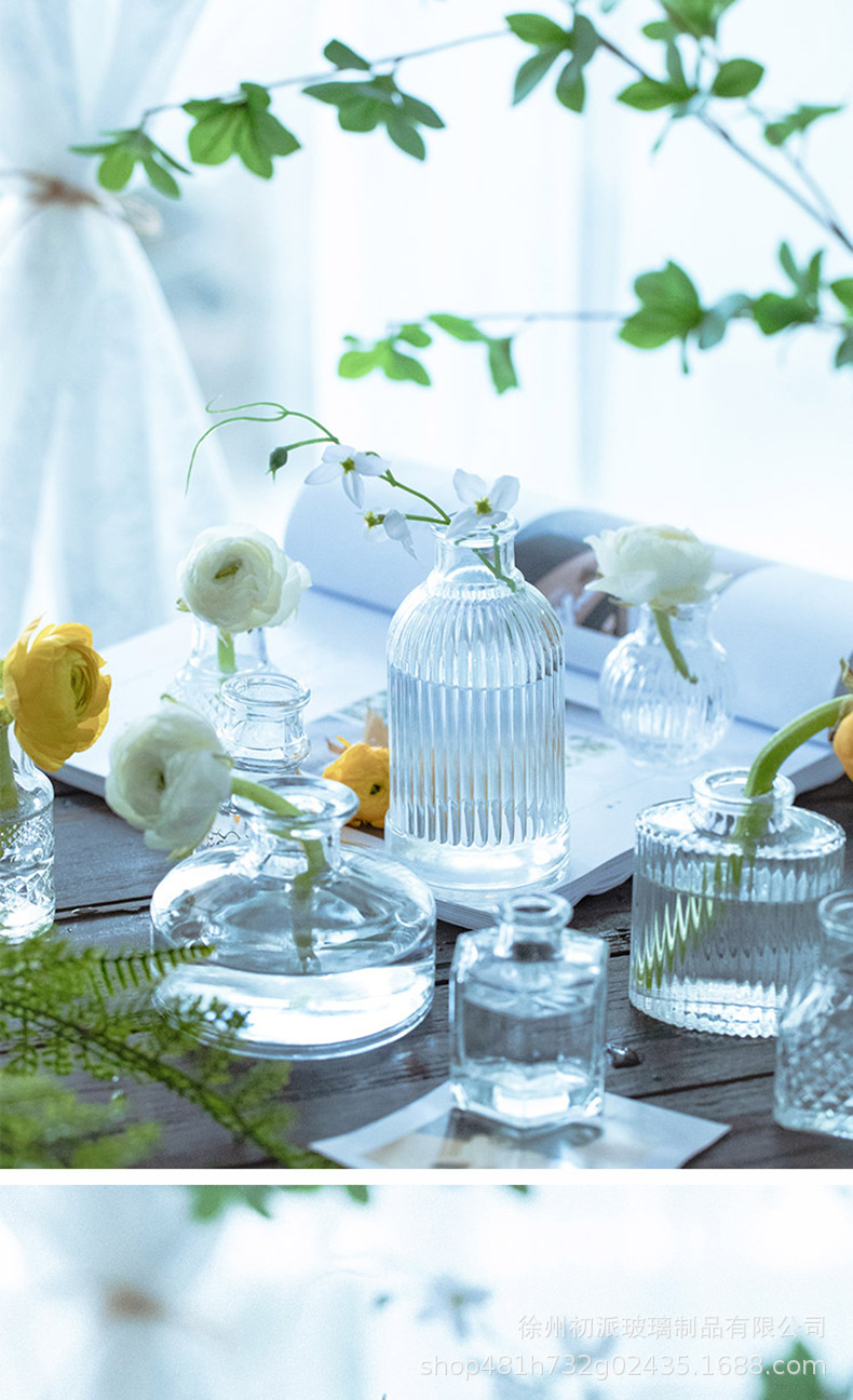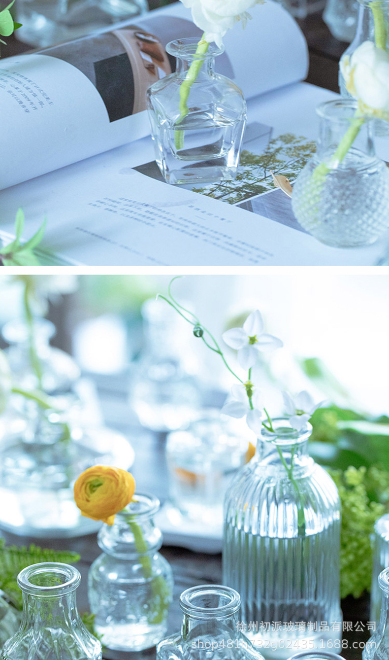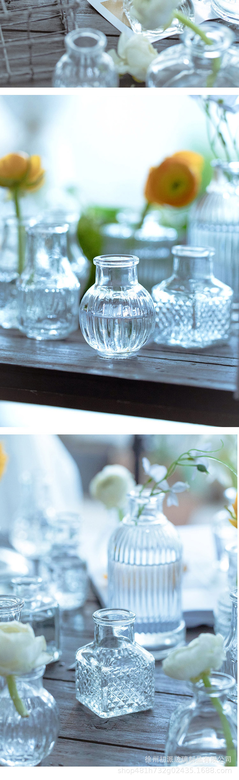 아마존 미니멀리스트 미니 유리 꽃병 양각 투명 수경 꽃 거실 식탁 장식 장식품 도매