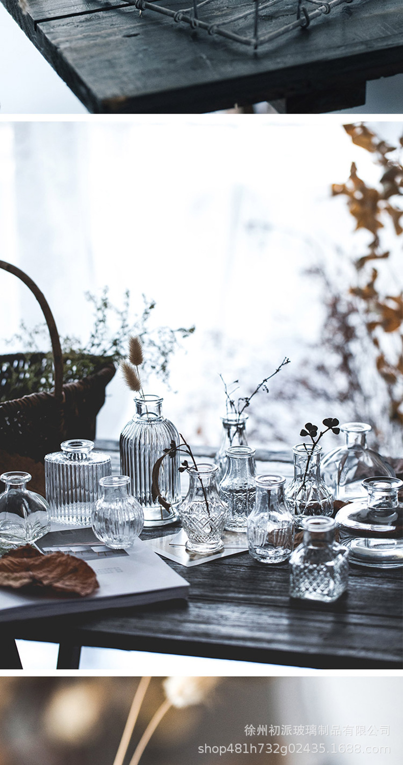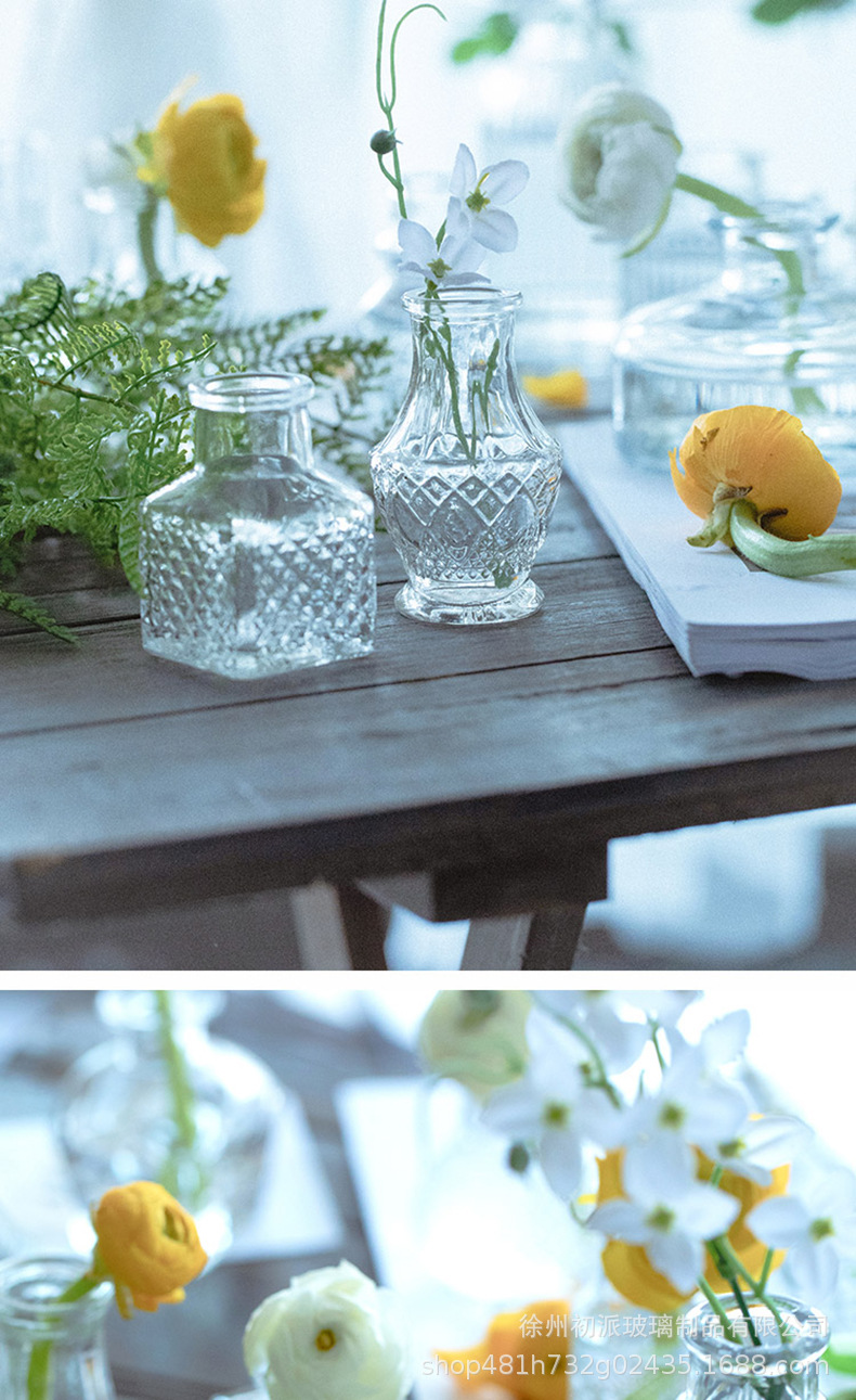 아마존 미니멀리스트 미니 유리 꽃병 양각 투명 수경 꽃 거실 식탁 장식 장식품 도매스토어 가기