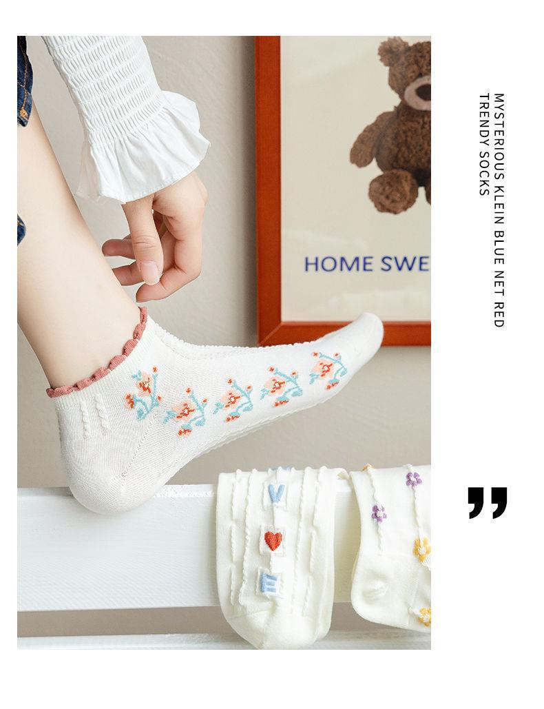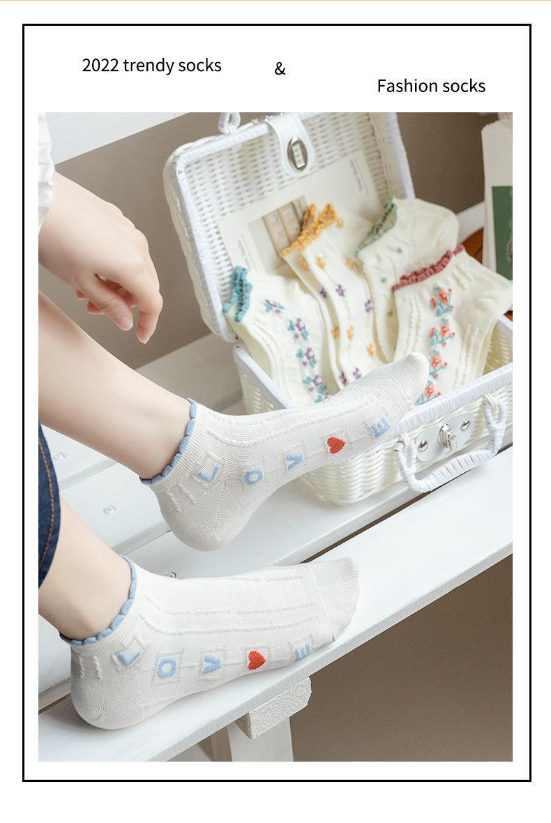 양말 여성용 짧은 양말 LOVE 꽃 얕은 보트 양말 귀여운 레이스 대학 스타일 학생 낮은 냄새 탈취제 레이스 양말스토어 가기