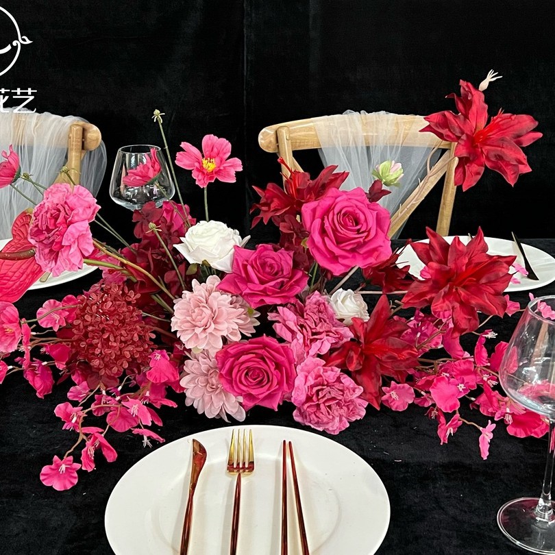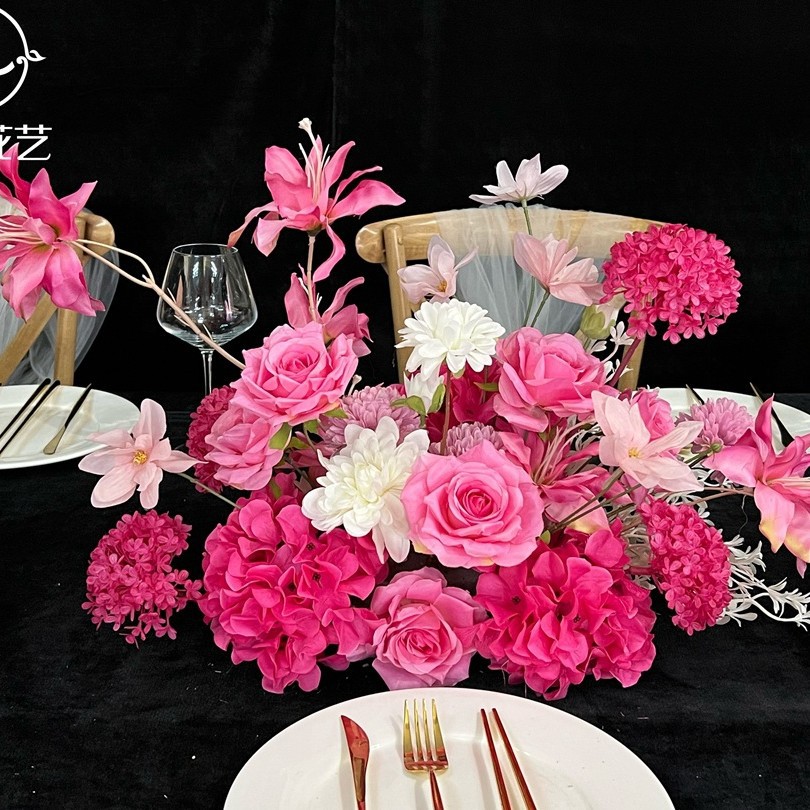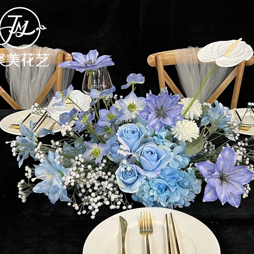 생일 결혼식 파티 연회 식탁 꽃 완성 외국 무역 식탁 꽃 의자 다시 꽃 결혼식 장식 가짜 꽃 도매