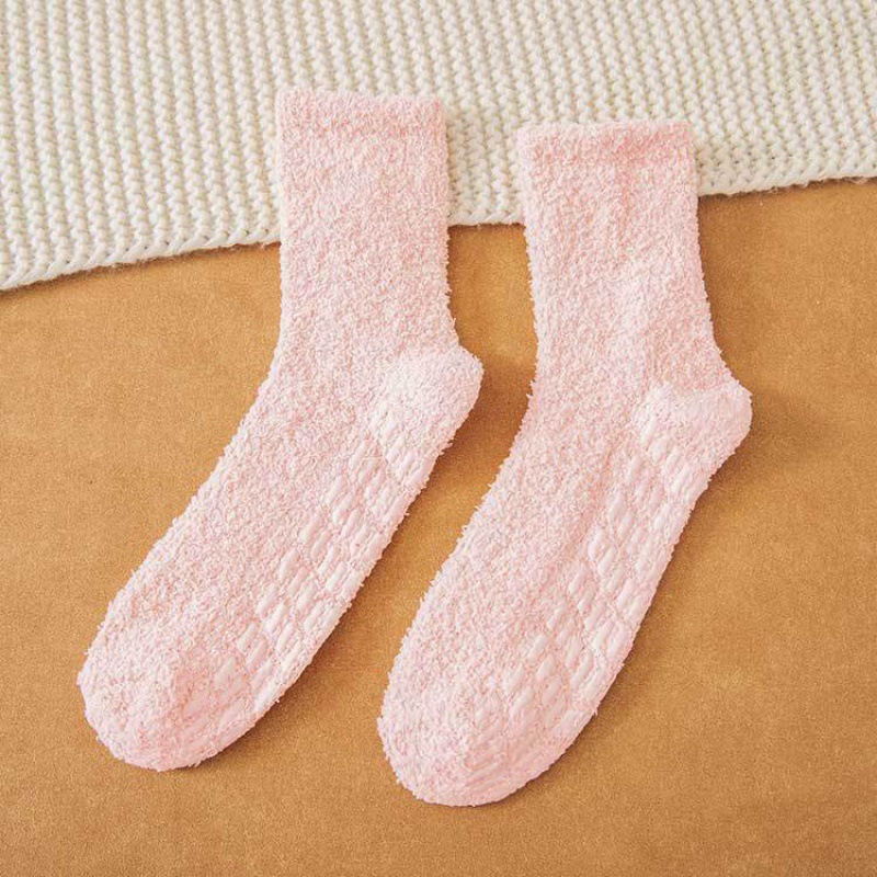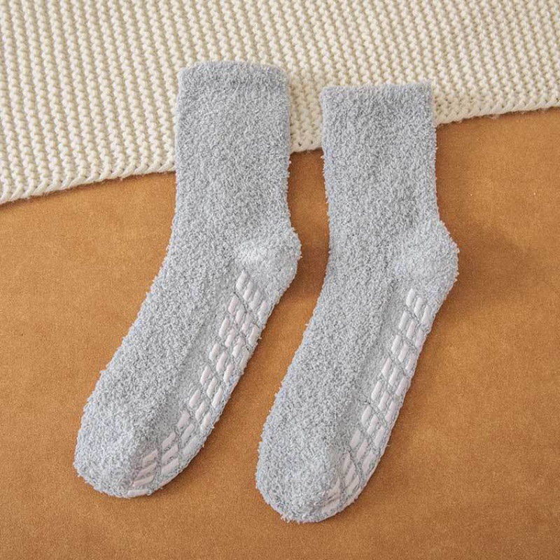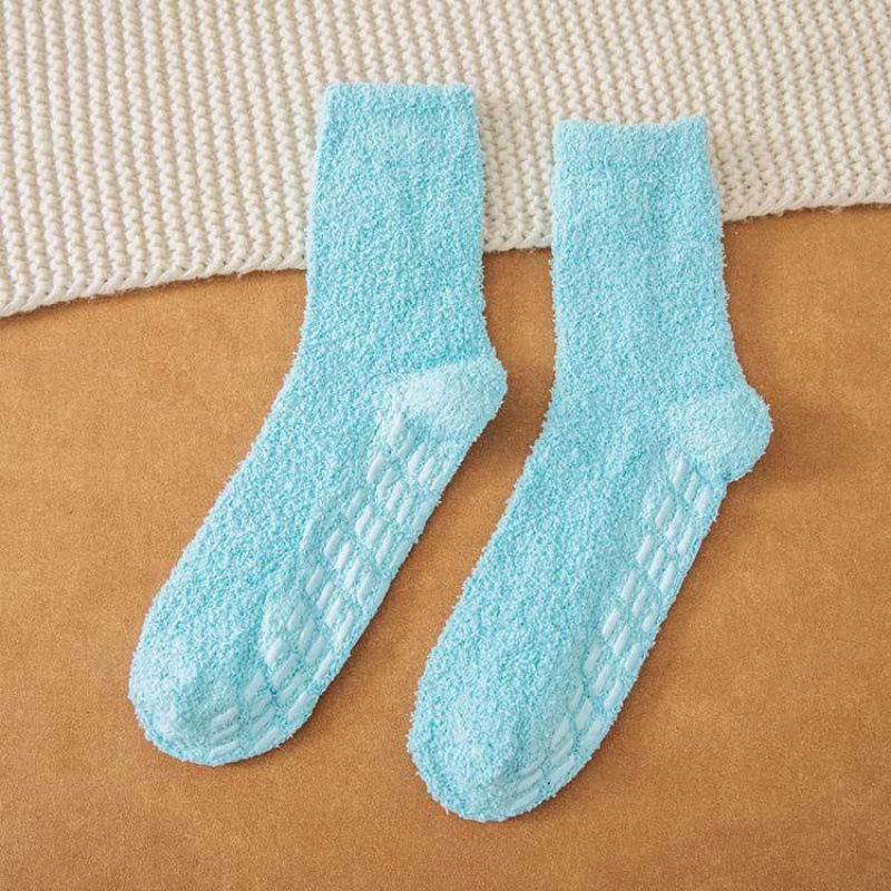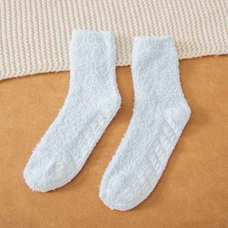 가을과 겨울 여성용 산호 벨벳 양말 단색 미끄럼 방지 접착 양말 따뜻하고 편안한 수건 양말 가정 바닥 양말