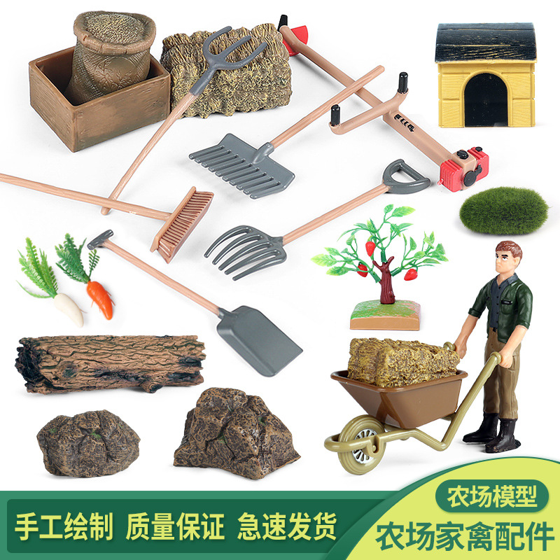 시뮬레이션 동물 모델 보드 캐리지 소품 나무 울타리 피드 야채 농장 농장 도구 액세서리 장난감 장면 장식품스토어 가기