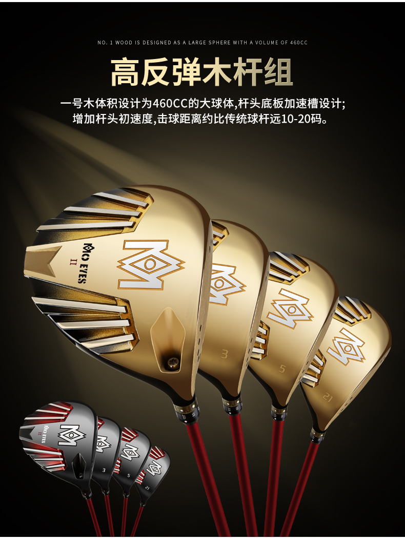 3.高反弹木杆组,一号木体积460cc,底版加速槽设计,增加杆头初速度。 | ||||