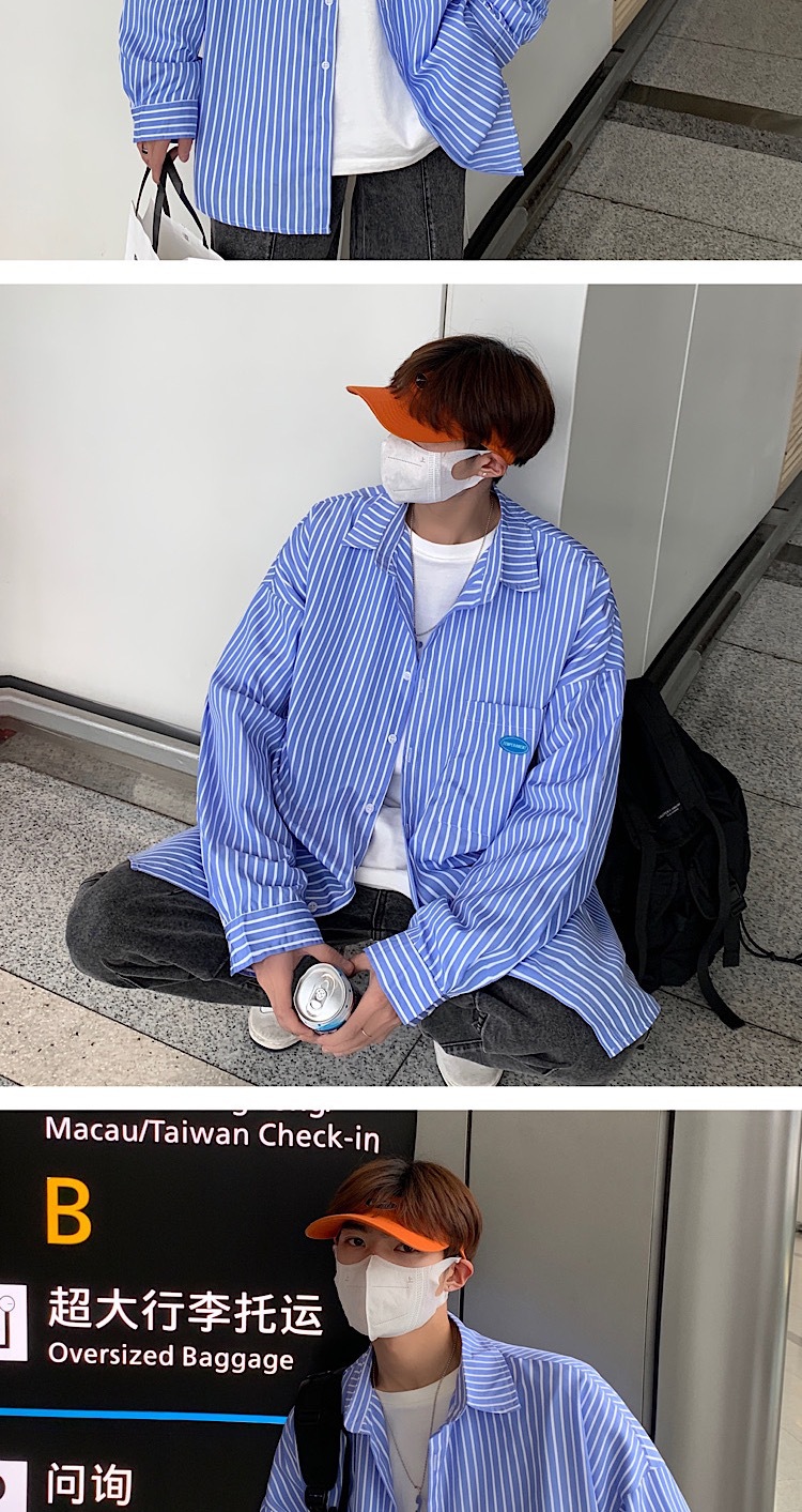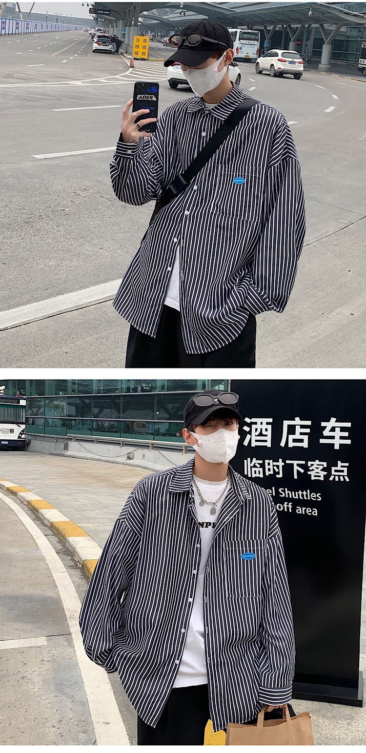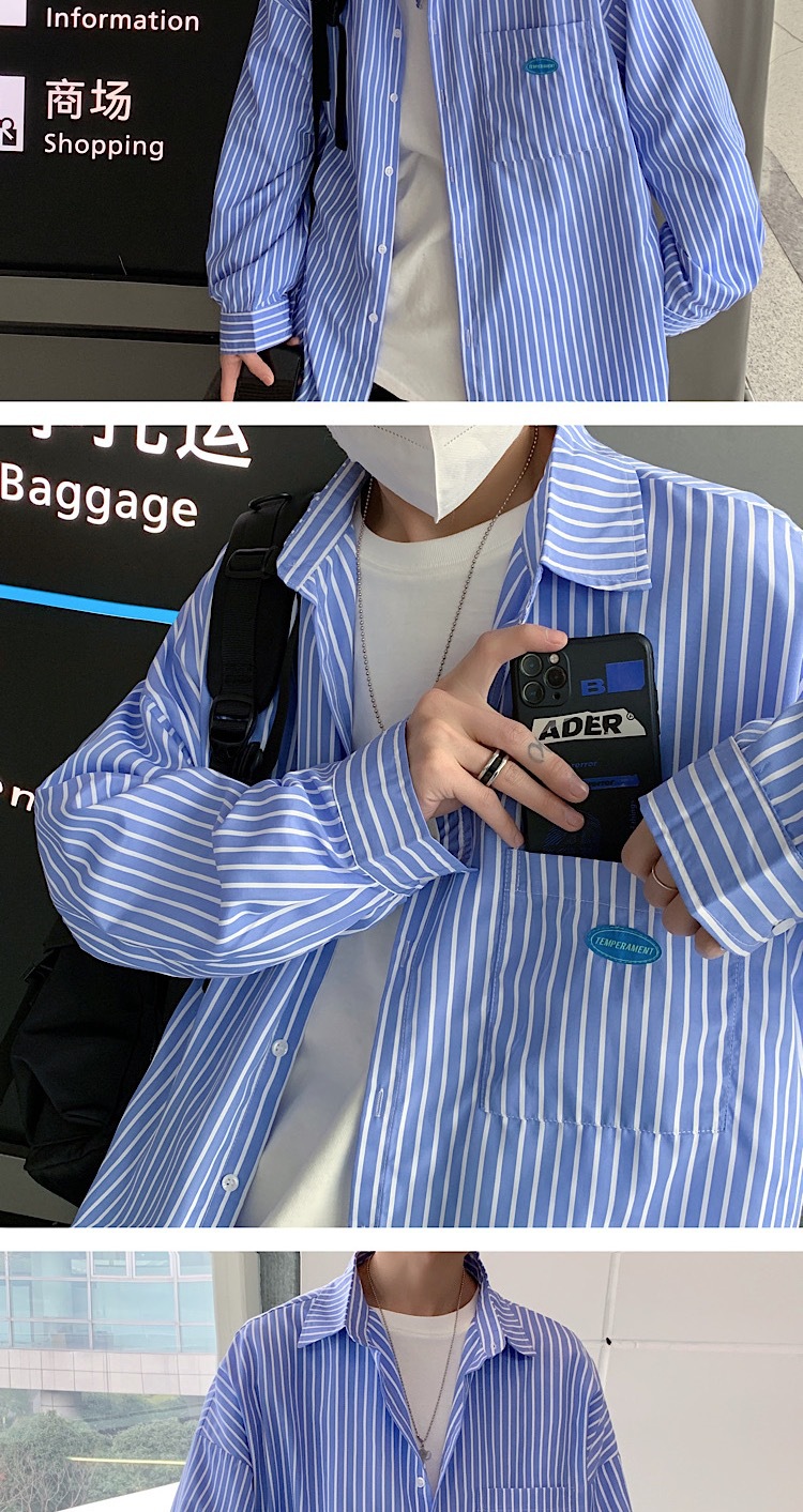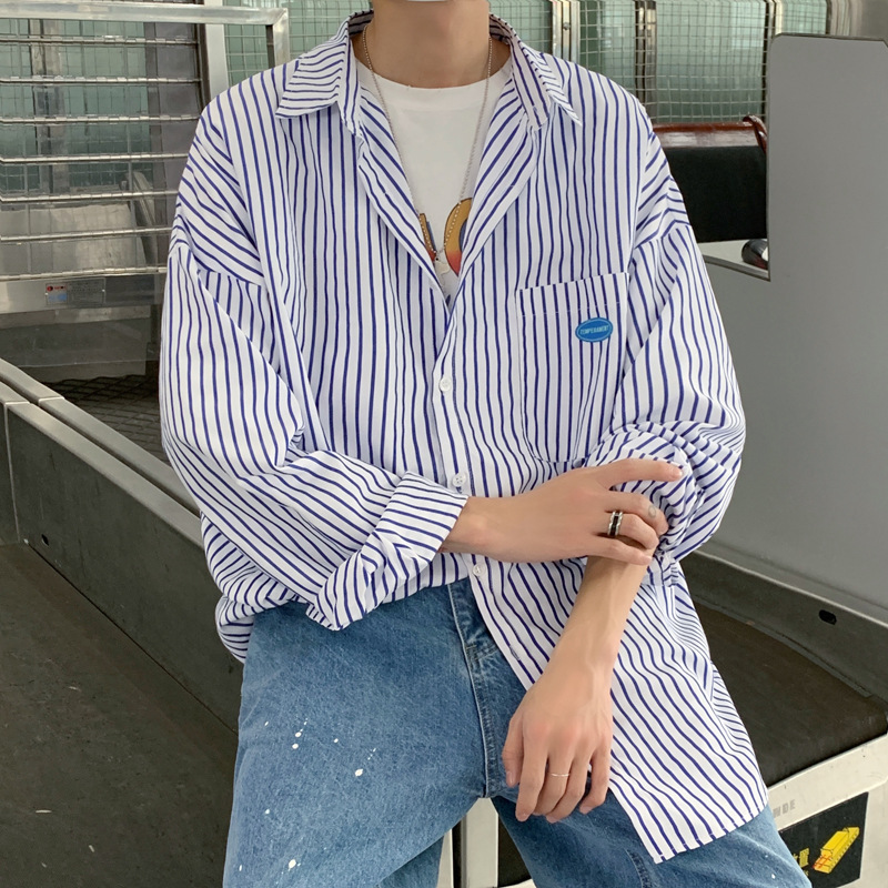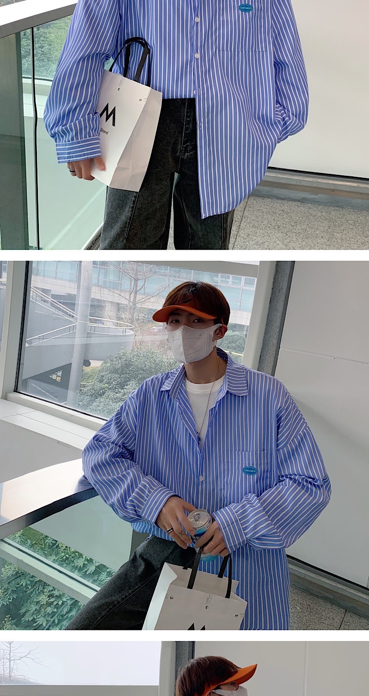 스트라이프 긴팔 셔츠 남자의 가을 고급 느낌 Ruffian 잘 생긴 유행 코트 홍콩 스타일 일본식 여피 남자 친구 스타일 셔츠스토어 가기