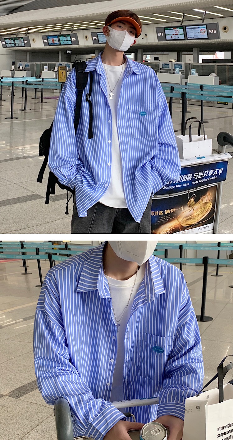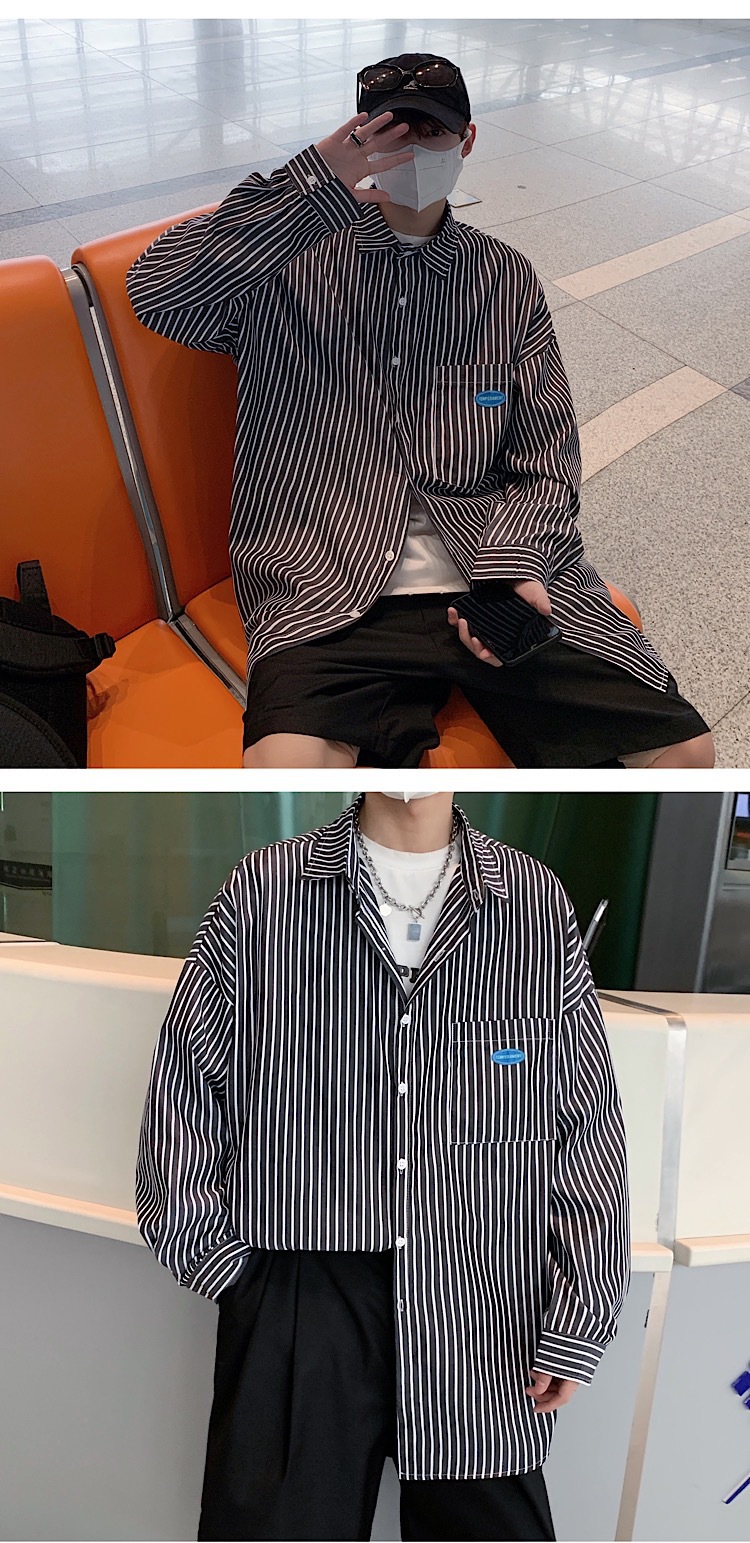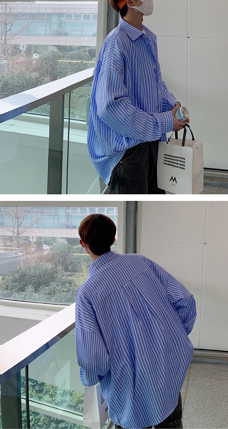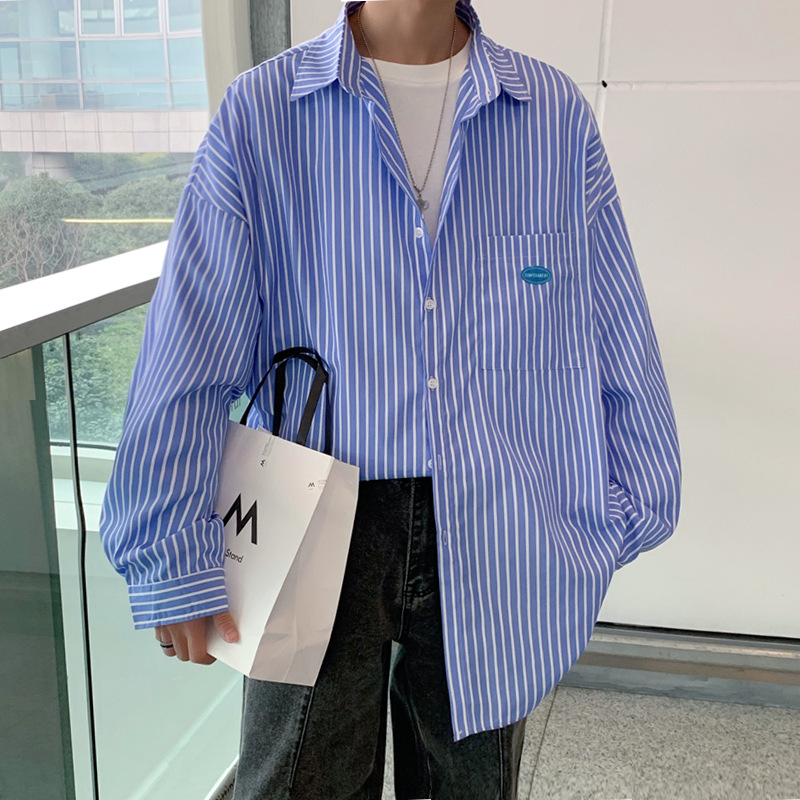 스트라이프 긴팔 셔츠 남자의 가을 고급 느낌 Ruffian 잘 생긴 유행 코트 홍콩 스타일 일본식 여피 남자 친구 스타일 셔츠스토어 가기