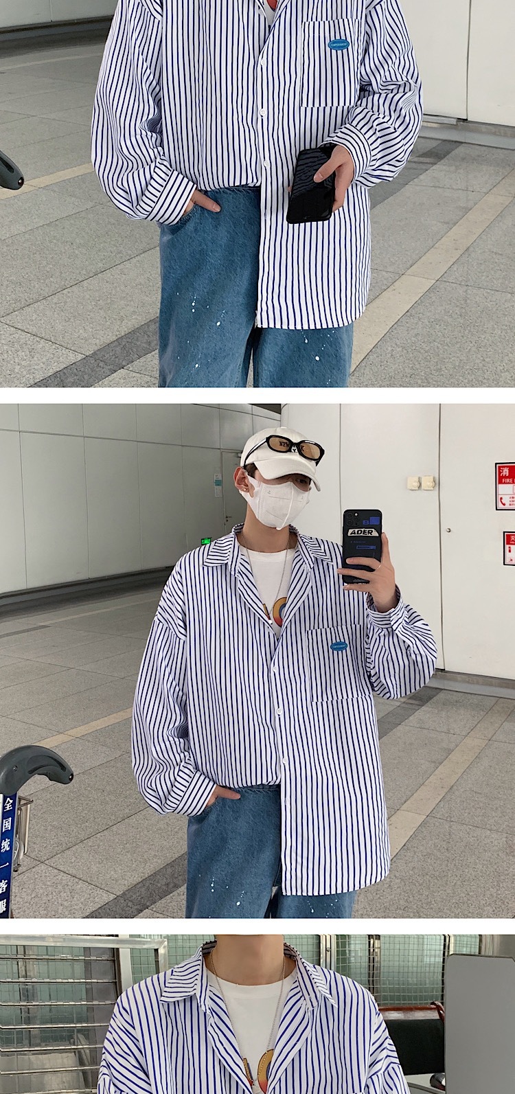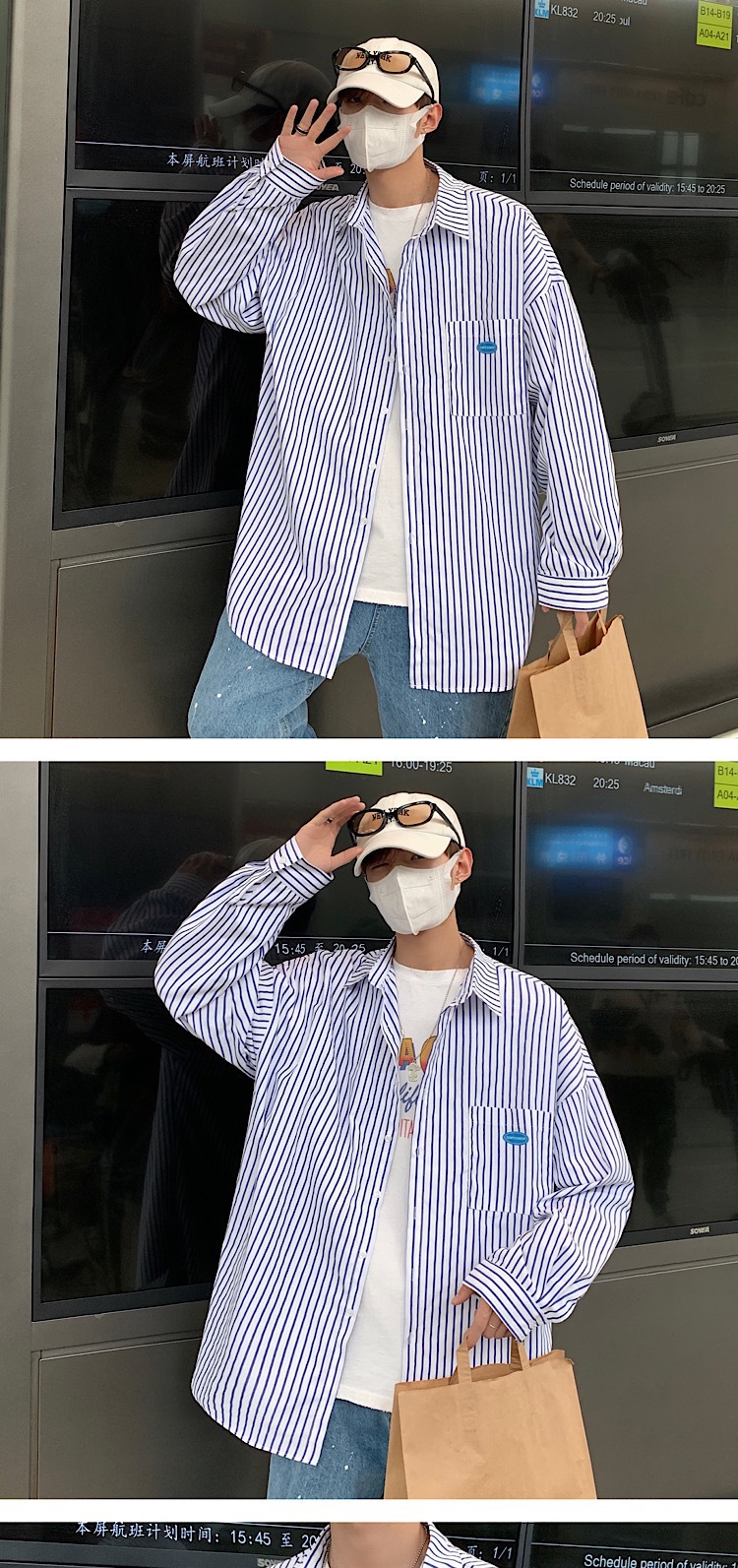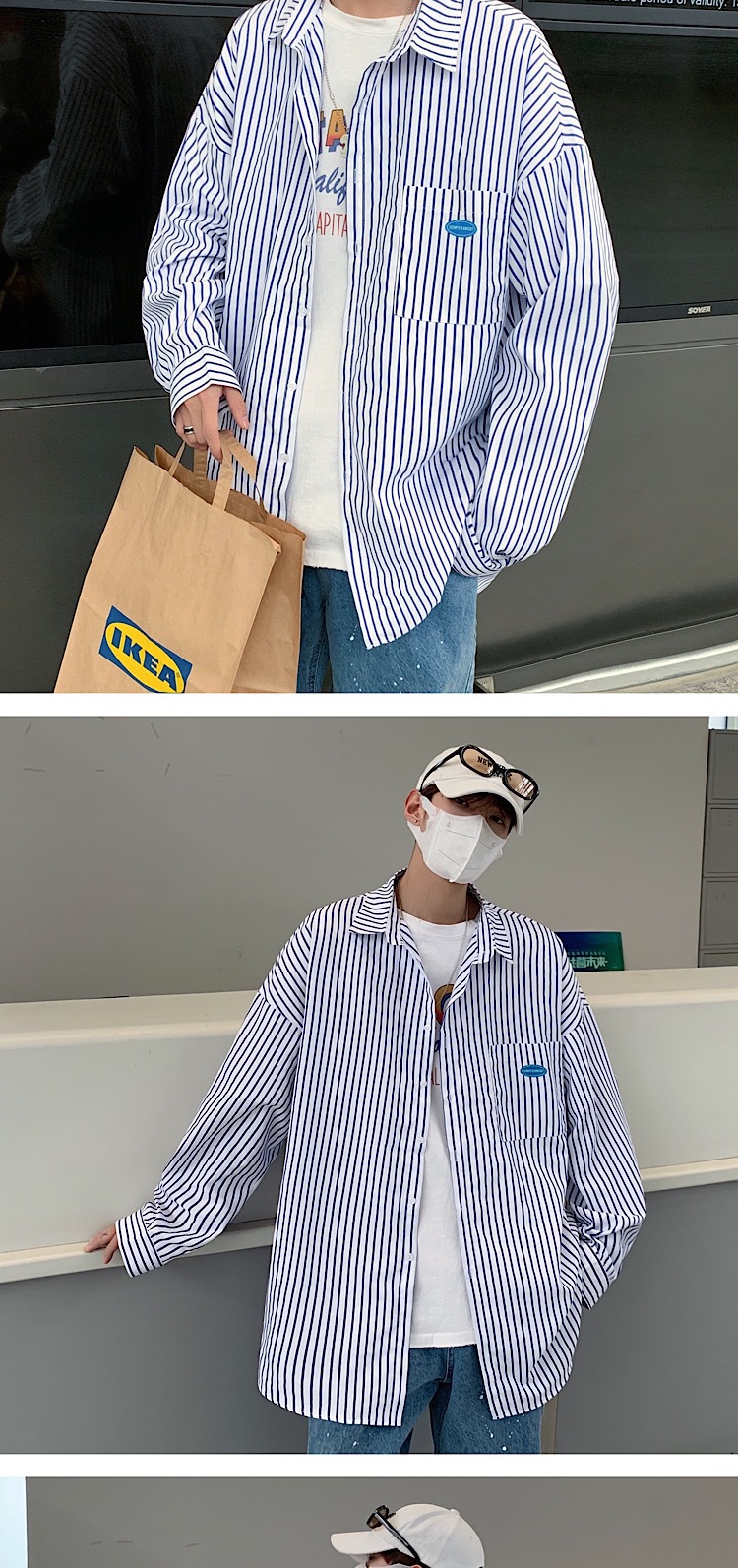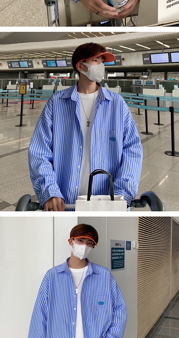 스트라이프 긴팔 셔츠 남자의 가을 고급 느낌 Ruffian 잘 생긴 유행 코트 홍콩 스타일 일본식 여피 남자 친구 스타일 셔츠스토어 가기