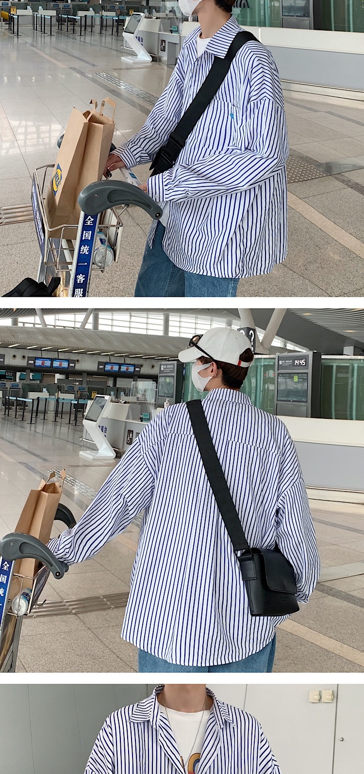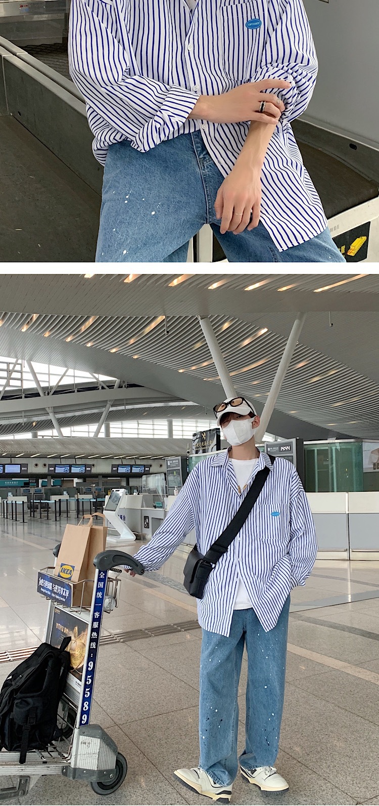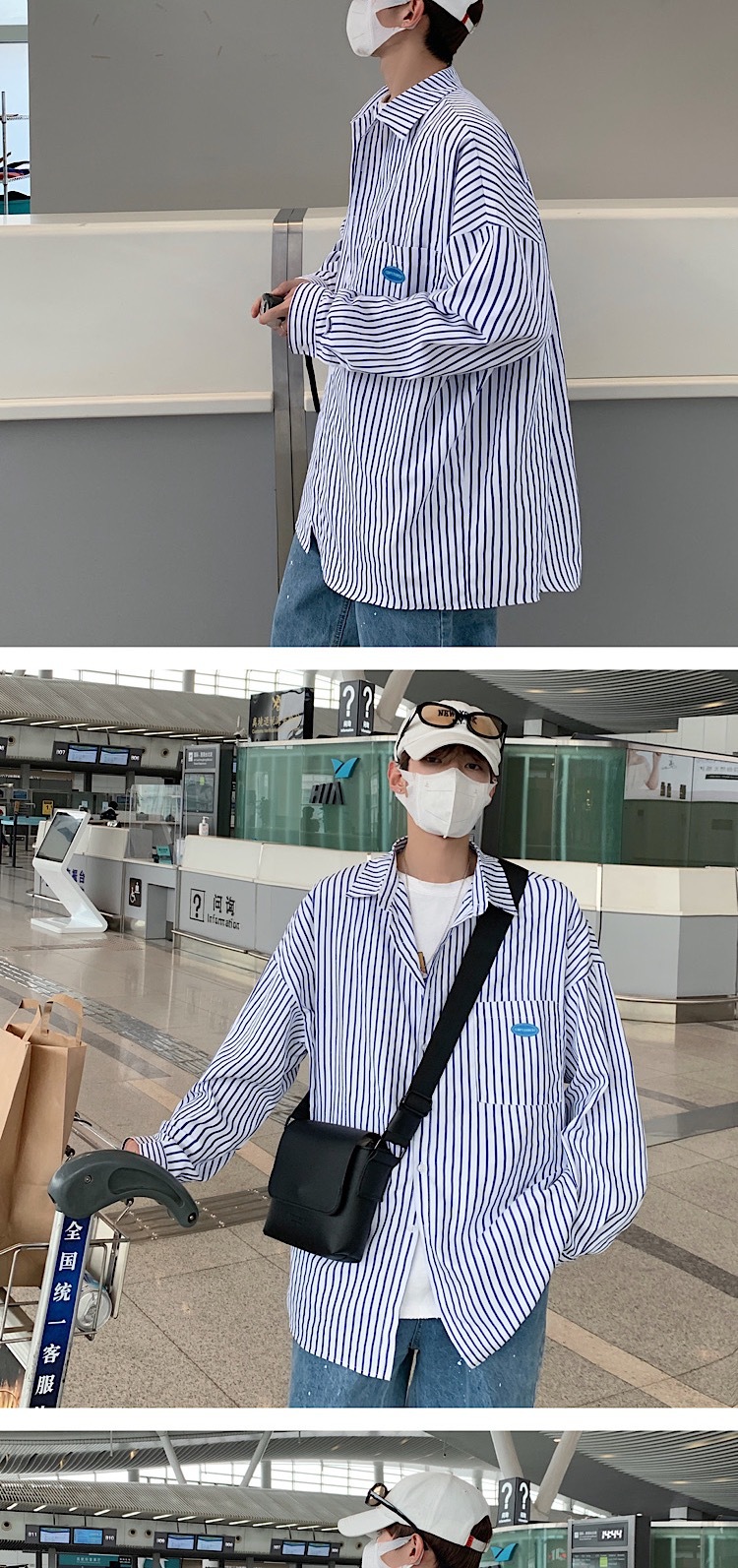 条纹长袖衬衫男秋季高级感痞帅ins潮外套港风日系雅痞男友风衬衣