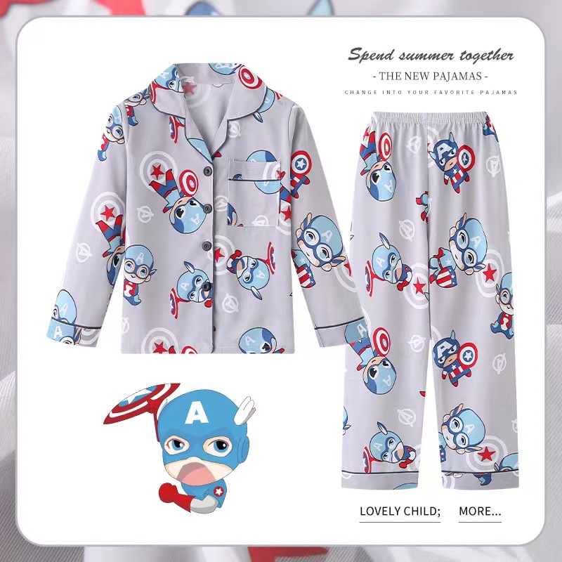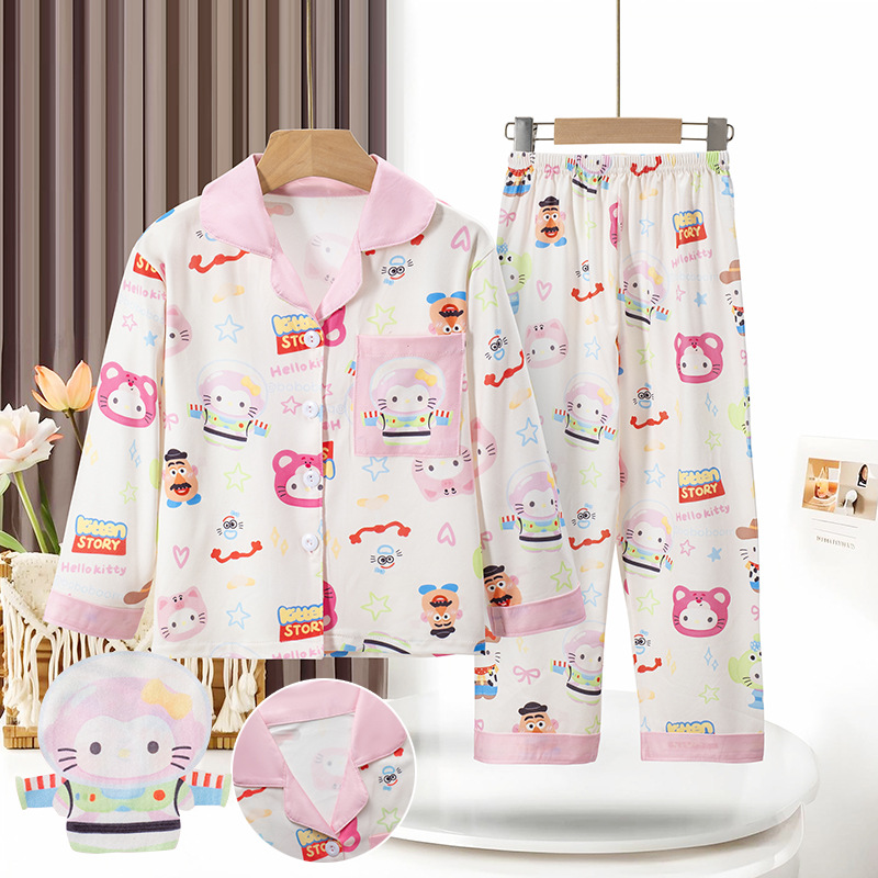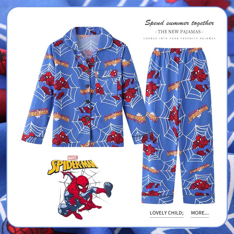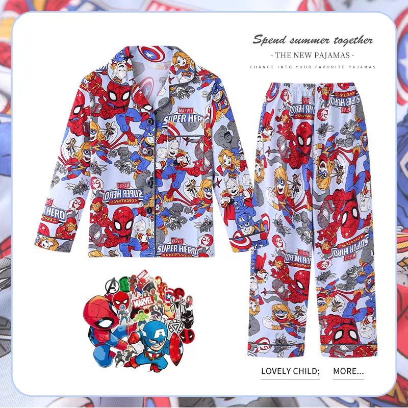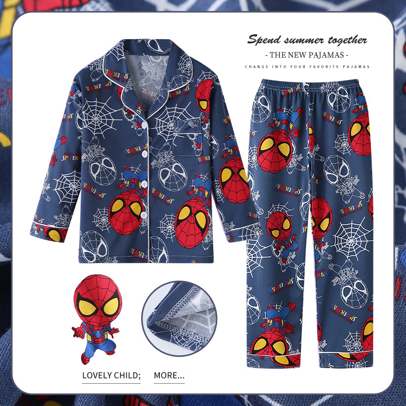 어린이 잠옷 소년 봄 가을 소녀 긴 소매 옷깃 가디건 대형 어린이 만화 소년 가정 옷 세트 겉옷스토어 가기