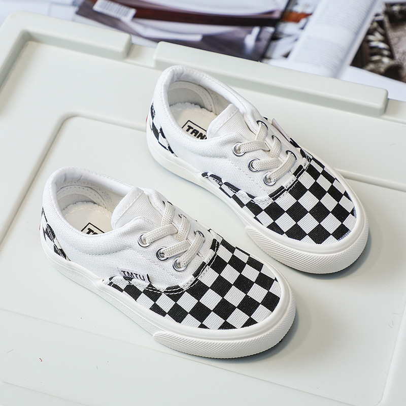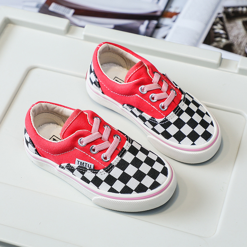 어린이 캔버스 신발 복숭아색 체커보드 2025 봄 새로운 슬립 온 소녀 신발 소년 캐주얼 운동화스토어 가기