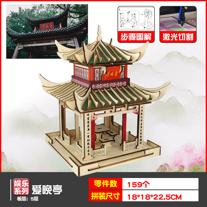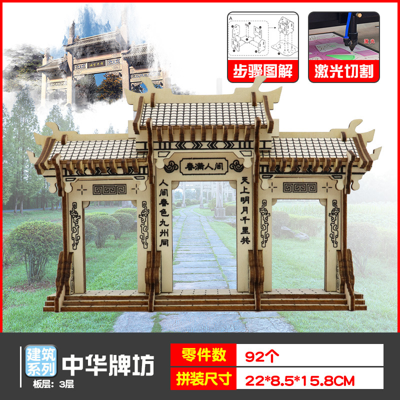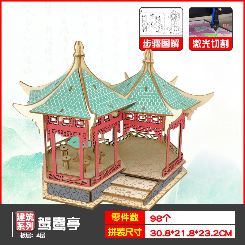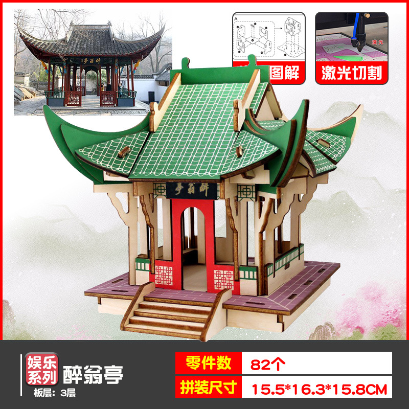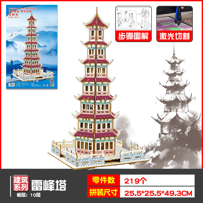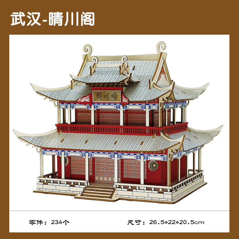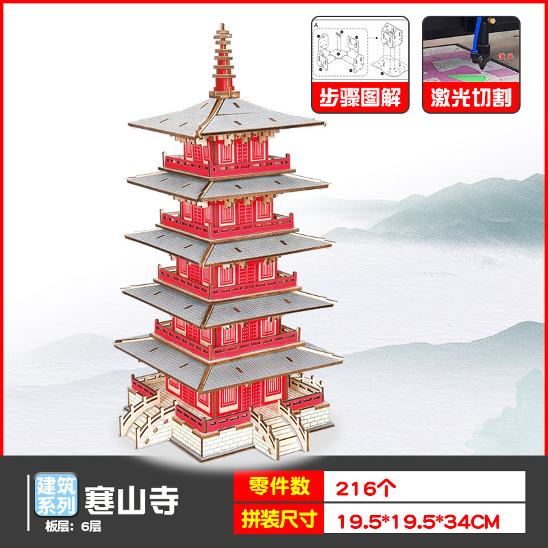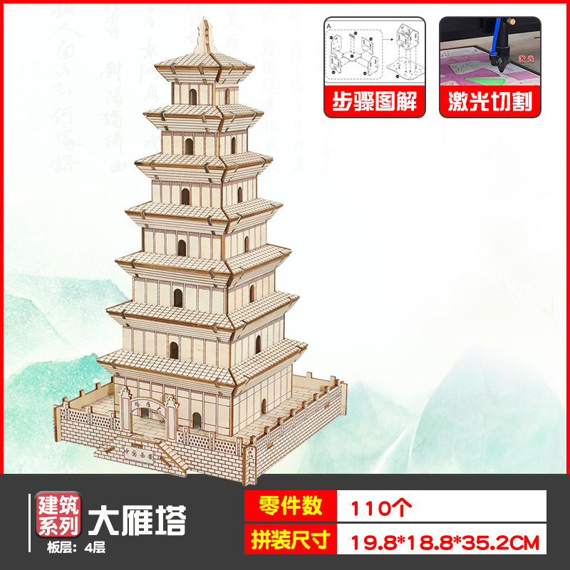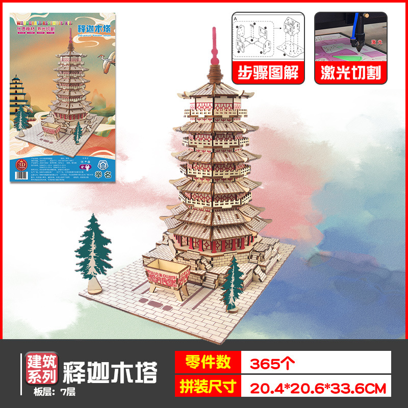 나무 모형 조립 장난감 퍼즐 어린이 도매 나무 시뮬레이션 구이저우 동 드럼 타워 광시 빌딩 모델스토어 가기