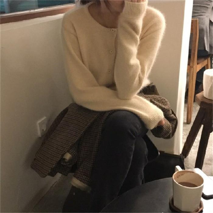 코어 방적 샌드 스웨터 니트 가디건 레이어드 루즈하고 부드러운 재킷 베이스 레이어와 이너웨어 한국식 서양식 여성 상의스토어 가기