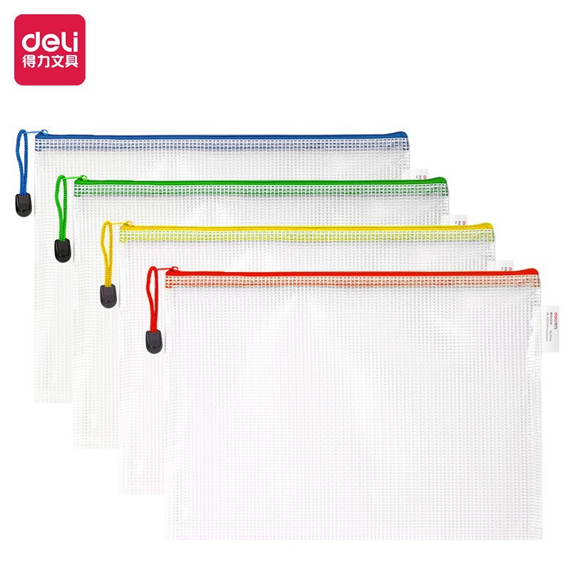 델리 문구/63456 메쉬 지퍼 가방 A4 투명 프로스트 EVA 지폐 저장 가방 A5 파일 가방