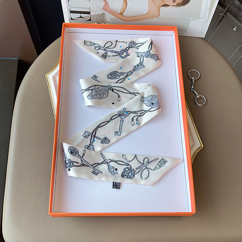 유럽과 미국 헤어 밴드 여성용 헤어 액세서리 여름 뉴 빈티지 키 인쇄 롱 백 실크 스카프 헤어 밴드 작은 실크 스카프 도매