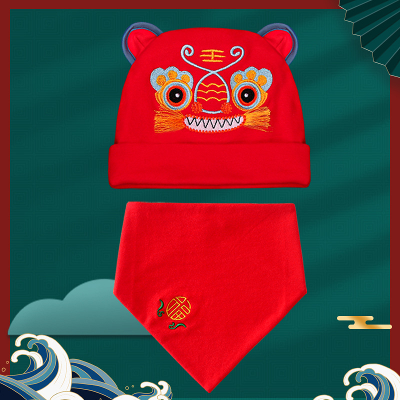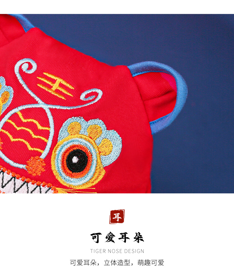 호랑이 머리 모자 아기 모자 빨간 보름달 백일 1 세 아기 모자 탈모 봄과 가을 중국 스타일 자수 HTML29