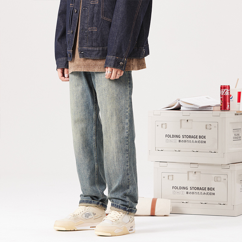 일본 청바지 남자의 느슨한 바지 플러스 사이즈 뚱뚱한 바지 스트레이트 남자의 바지 캐주얼 데님 남자의 와이드 레그 바지