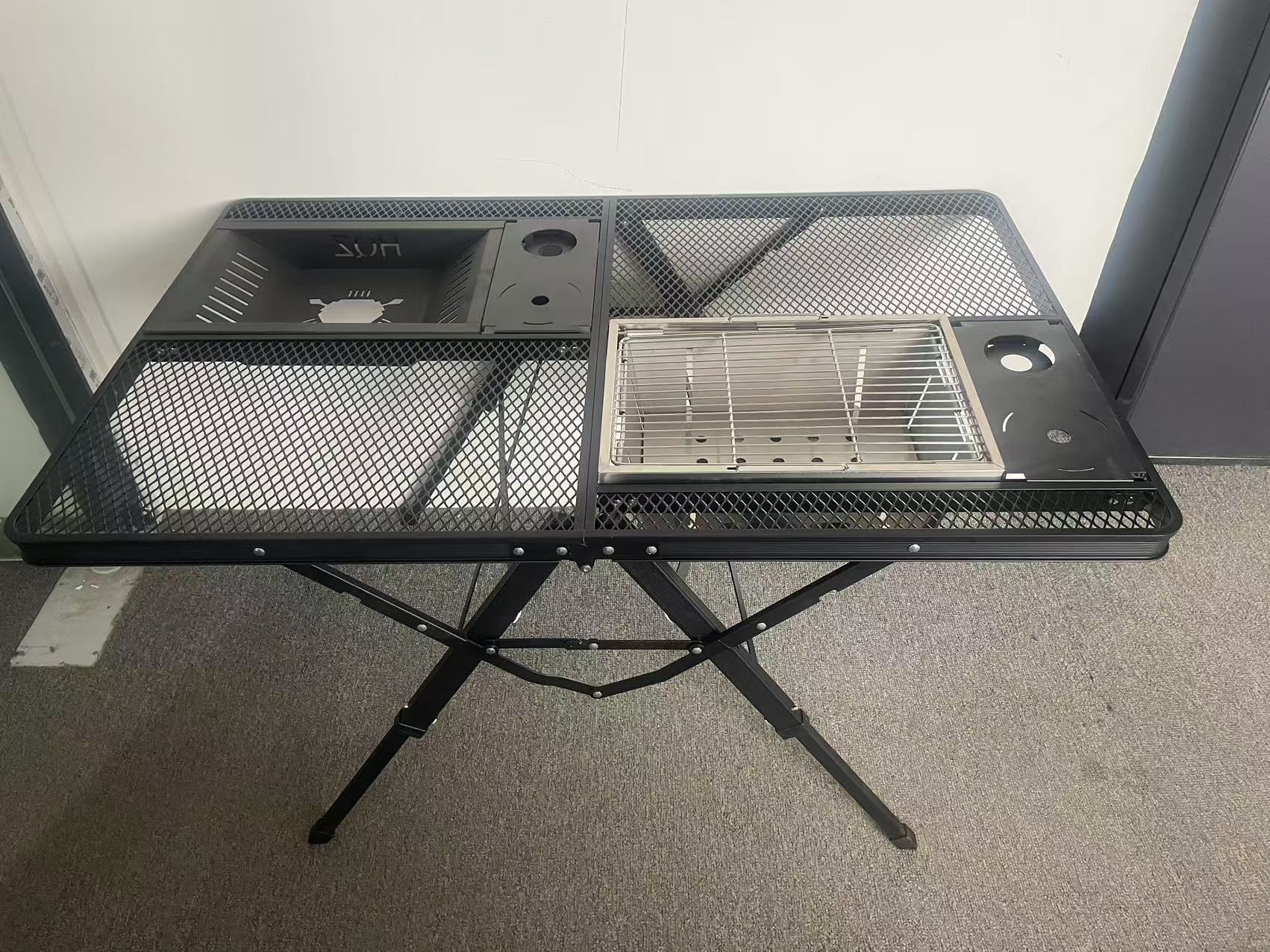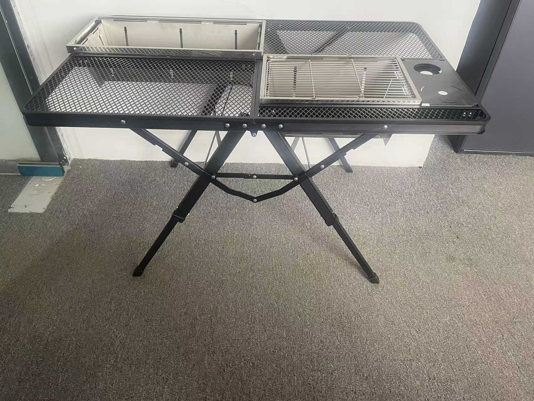 바베큐 캠핑을위한 야외 접이식 테이블 리프팅 스토리지 랙 피크닉 낚시 알루미늄 합금 식탁 휴대용 X 자형 테이블