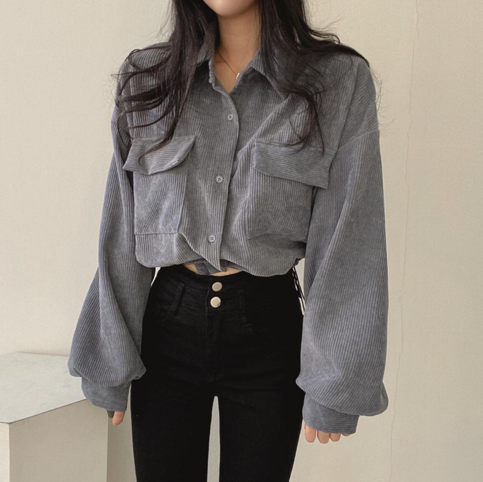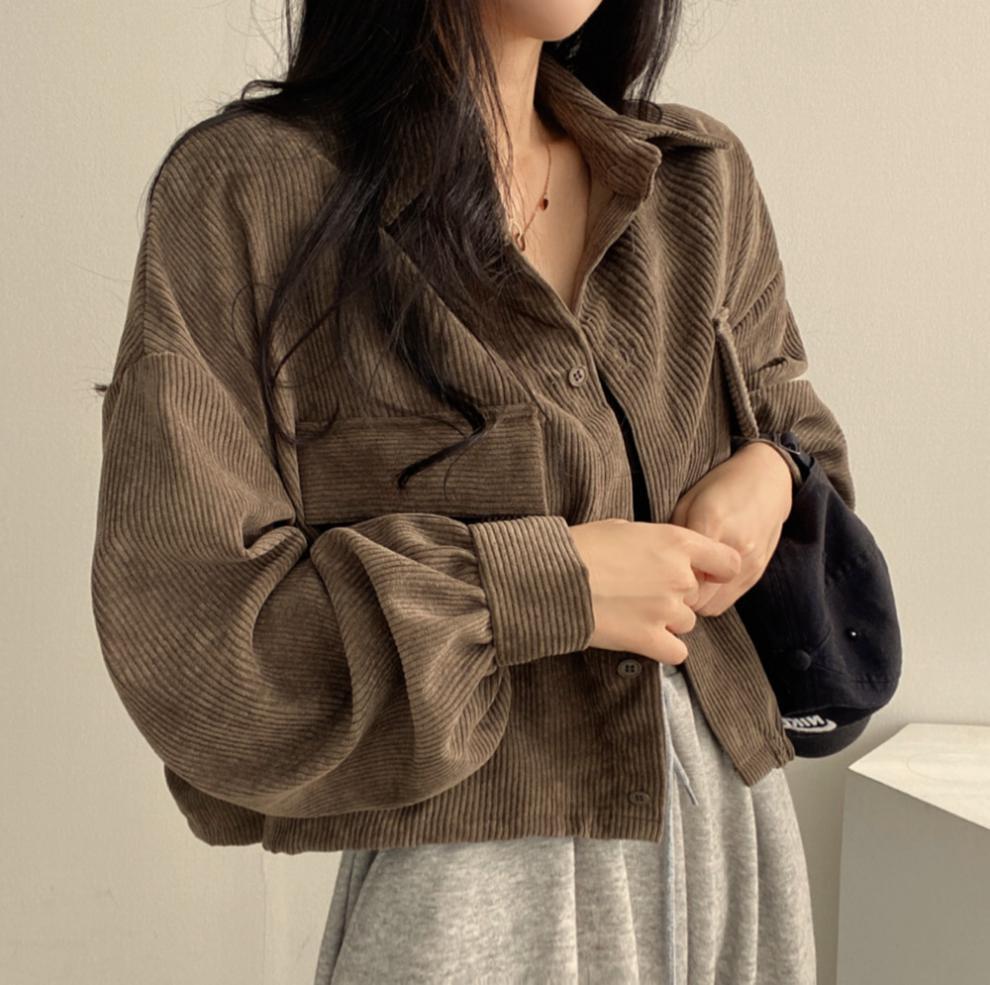여자의 봄과 가을 새로운 빈티지 느슨한 코듀로이 두꺼운 모든 매치 스택 긴 소매 셔츠 코트 여자의 소금 스타일스토어 가기