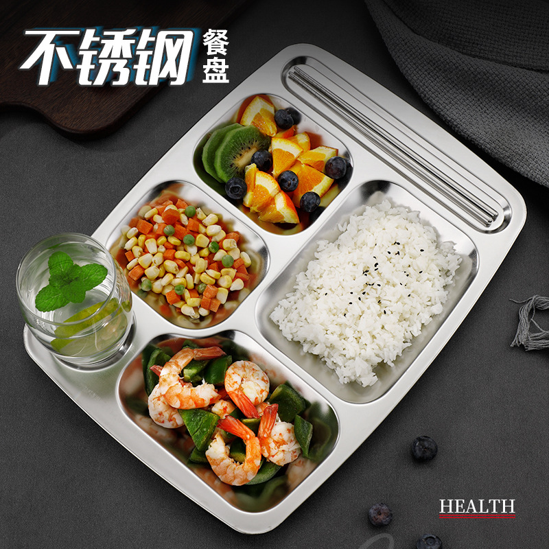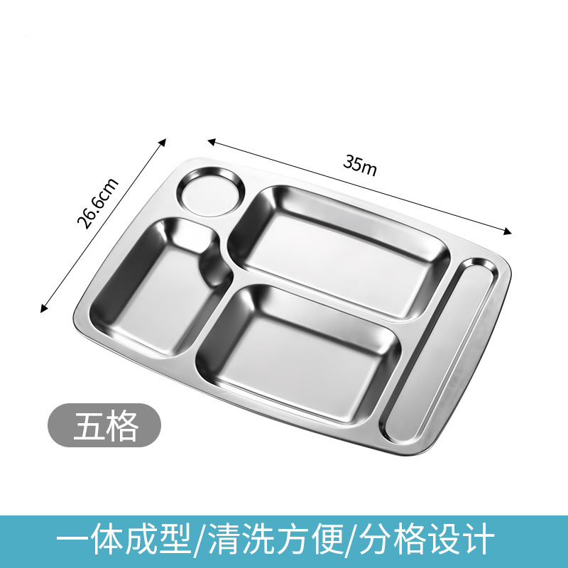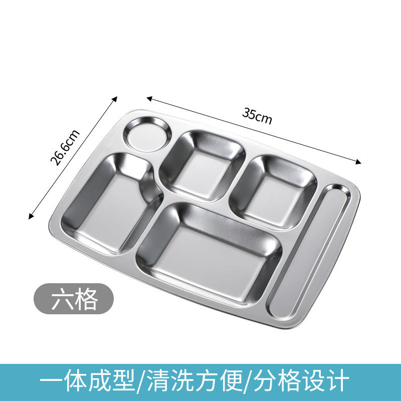스테인리스 패스트푸드 접시, 학교식당, 기관 및 단체용 칸막이 접시, 5칸 및 6칸 식사 접시, 성인용 트레이스토어 가기