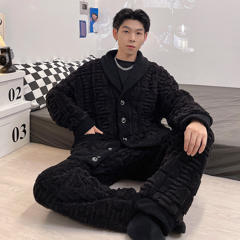 2022 새로운 파자마 겨울 자카드 산호 양털 따뜻한 남자 겨울 플란넬 남자 가정옷 원피스 배달