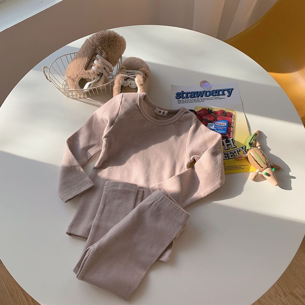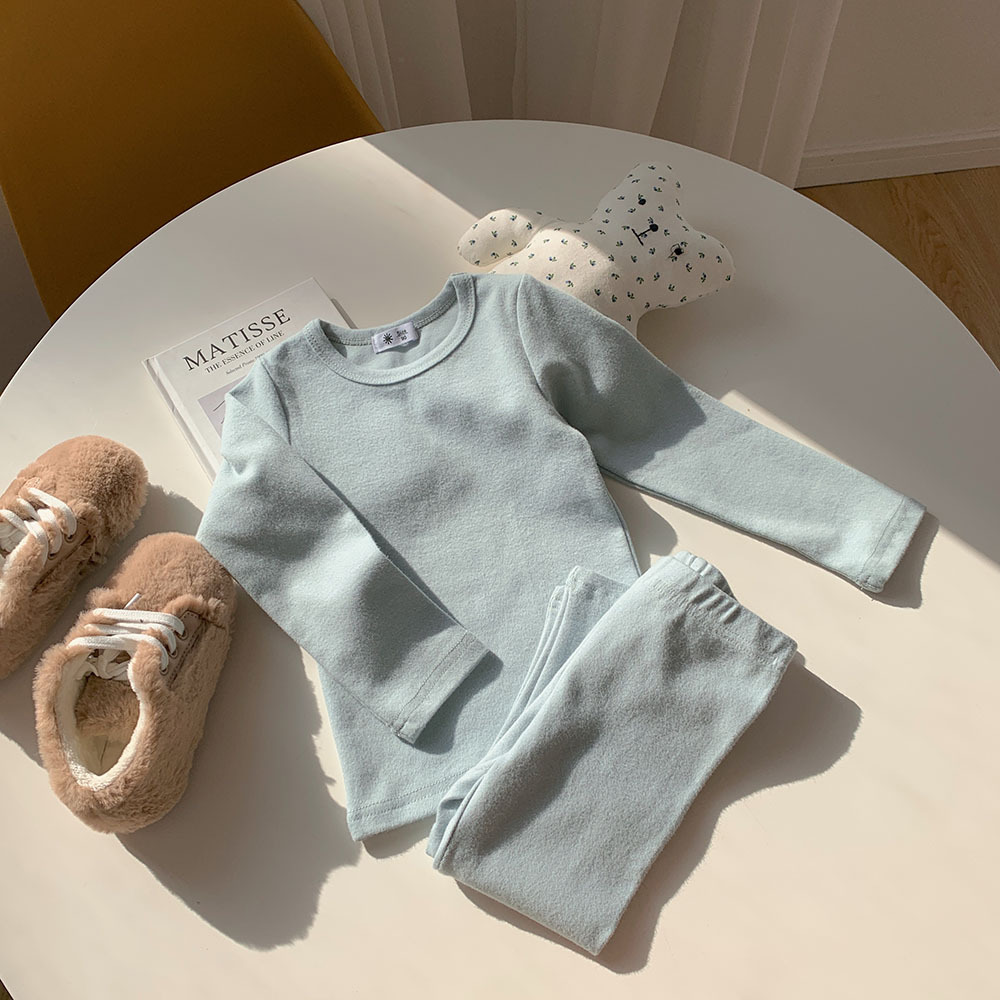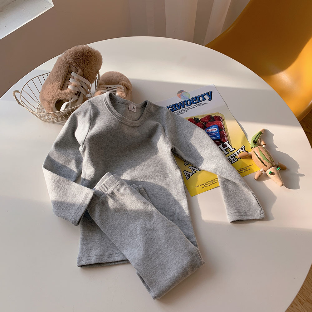 새로운 어린이 라운드 넥 잠옷 가을과 겨울 따뜻한 면 속옷 세트 어린이 가을 옷과 바지 두꺼운 단색 가정 옷