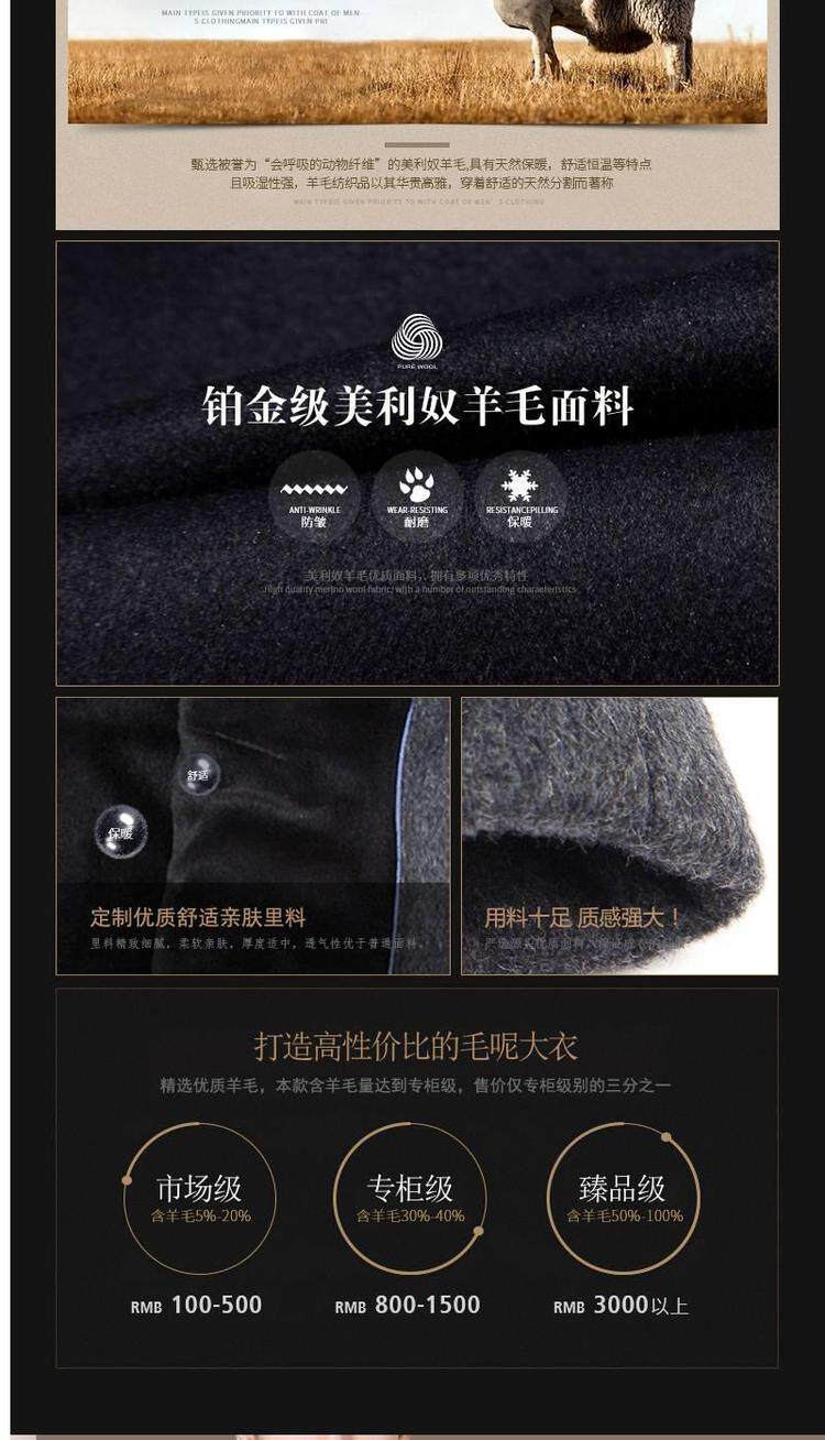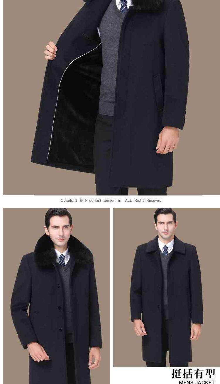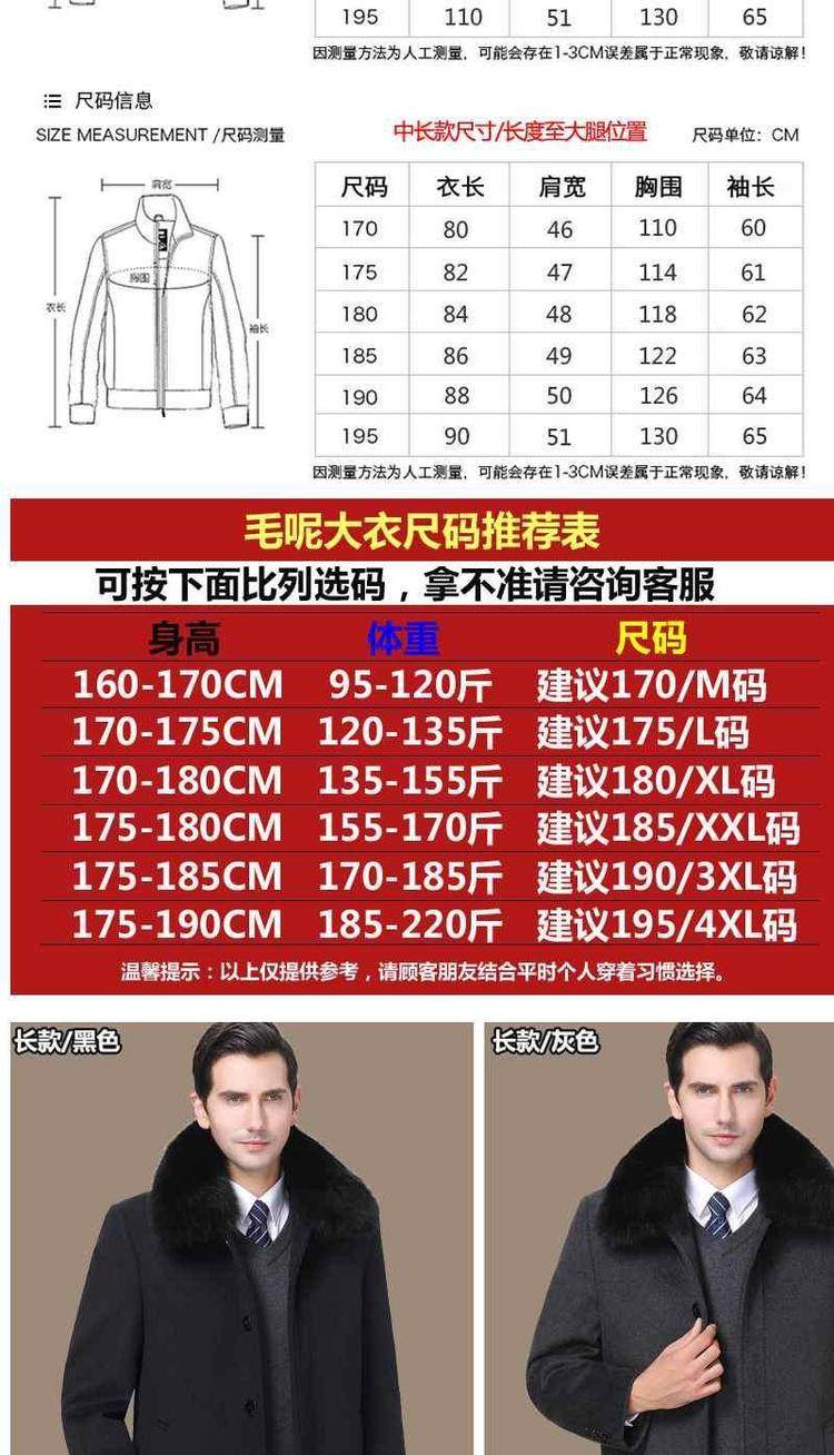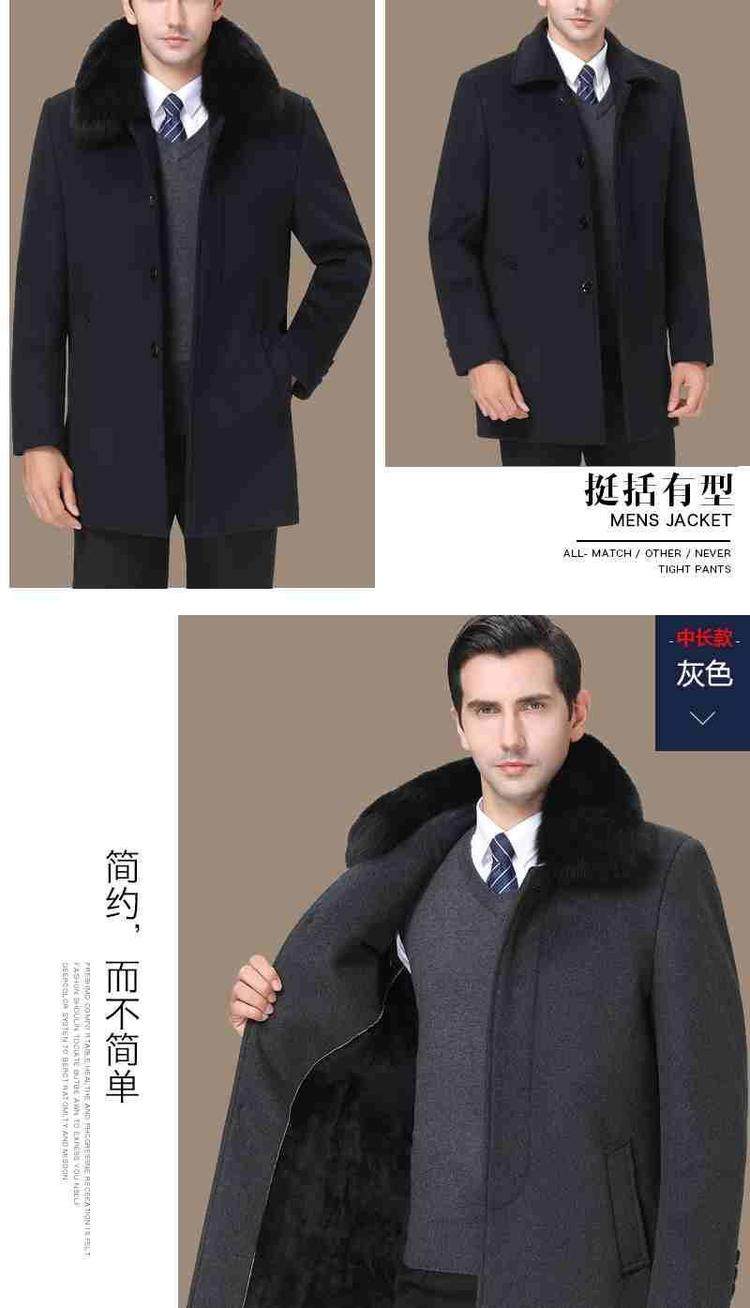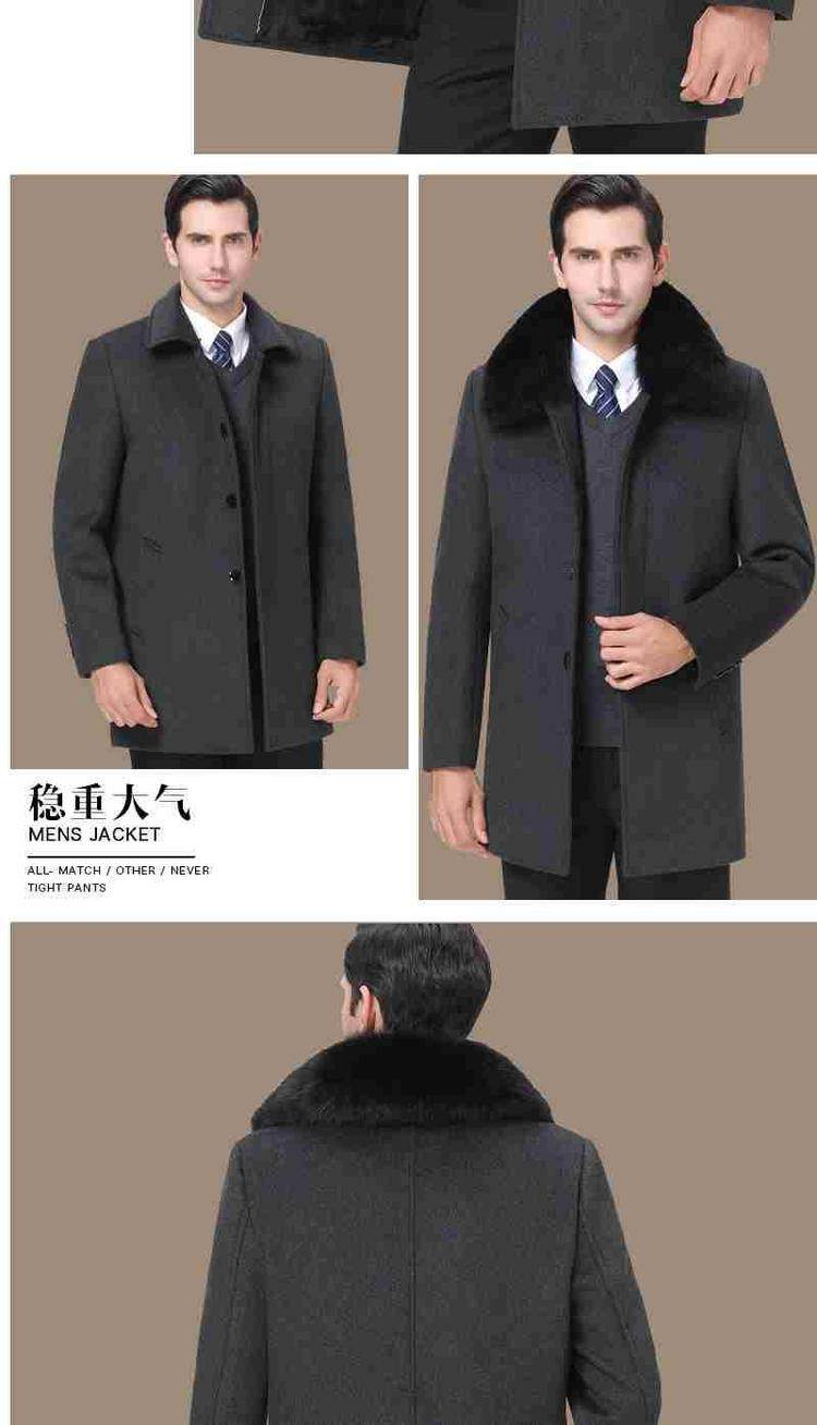 品牌|杉威狼|;材质|羊毛|;羊毛含量|30%(含-49%(含|;尺码|165/S|170/M|175/L|180/XL|185/XXL|190/3XL|195/4XL|;面料分类|毛呢大衣料|;图案|纯色|;领型|翻领|;衣门襟|单排扣|;颜色分类|灰色-长款【不加绒不带毛领】|黑色-长款【不加绒不带毛领】|灰色-长款【加绒加厚獭兔真毛领】|黑色-长款【加绒加厚獭兔真毛领】|灰色-中长款【不加绒不带毛领】|黑色-中长款【不加绒不带毛领】|灰色-中长款【加绒加厚獭兔真毛领】|黑色-中长款【加绒加厚獭兔真毛领】|;货号|SL11718|;细分风格|商务休闲|;基础风格|商务绅士|;上市年份季节|2018年冬季|;适用场景|其他休闲|;衣长|中长款|;服装版型|宽松|;款式细节|带毛领|;服饰工艺|免烫处理|;适用对象|中年|;下摆设计|本布下摆|;服装口袋样式|侧缝插袋|;销售渠道类型|纯电商(只在线上销售|;材质成分|聚酯纤维57.2%|羊毛42.8%|