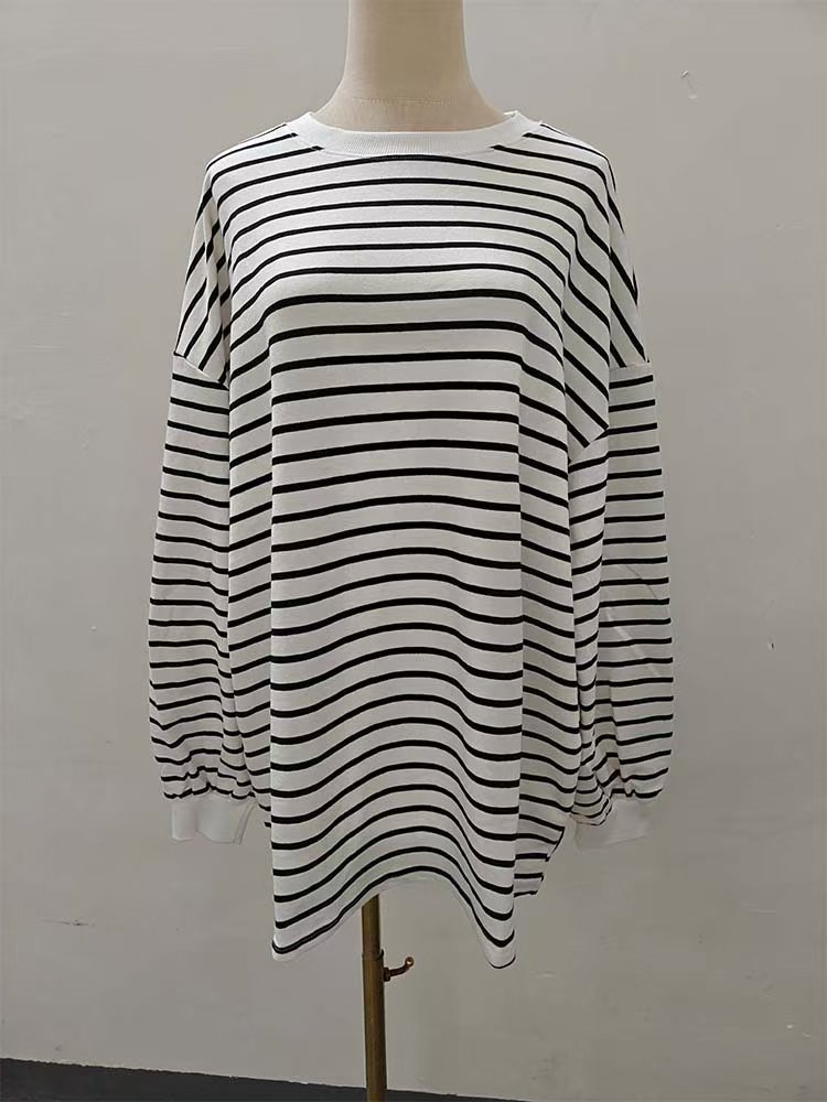 일본 여성 가을 겨울 신상 스트라이프 스웨트 셔츠 여성 루즈 코튼 대형 버전 여성용 베이스 탑 수출스토어 가기