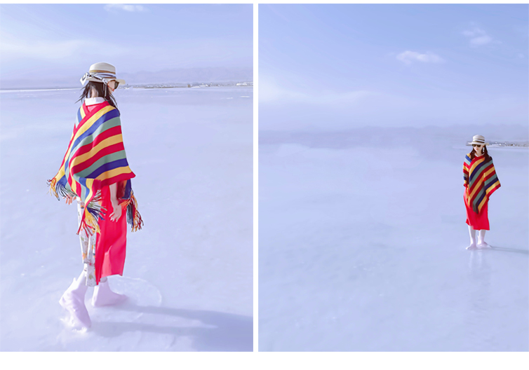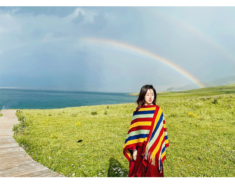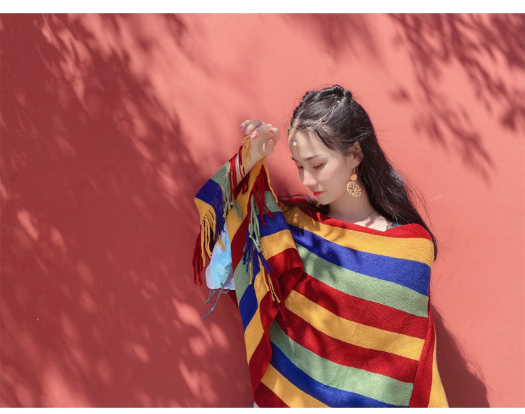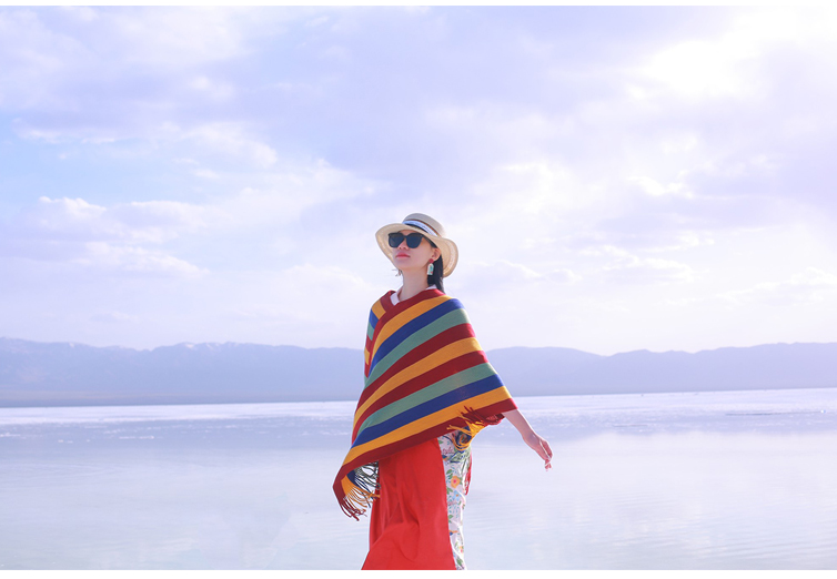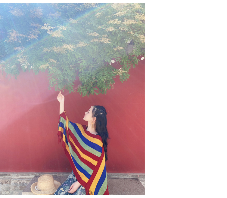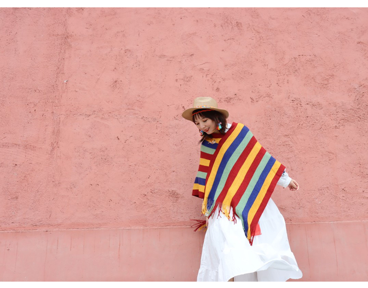 에스닉 스타일 Qinghai 호수 풀오버 신장 티베트 관광 사진 케이프 캐노피 니트 윈난 리장 달리 숄 여성스토어 가기