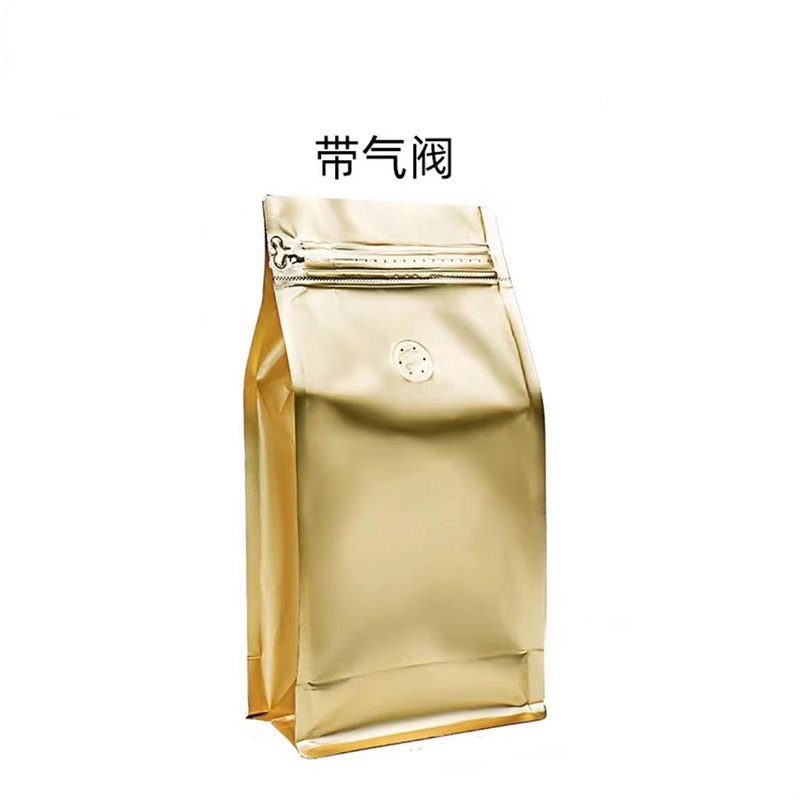 커피백 8 면 씰 단방향 배기 밸브 재고 알루미늄 도금 밀봉 사이드 지퍼 반 파운드 1kg 커피빈 포장 백