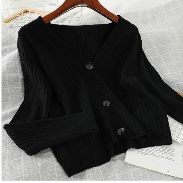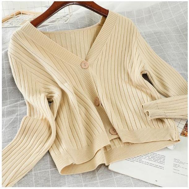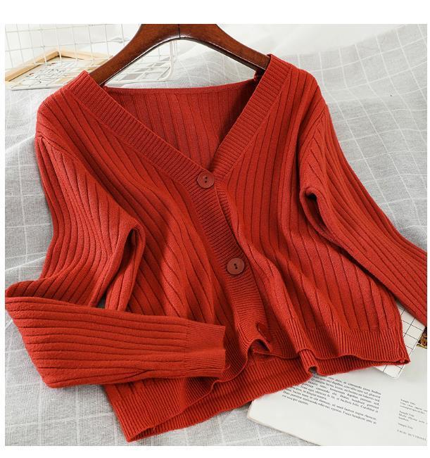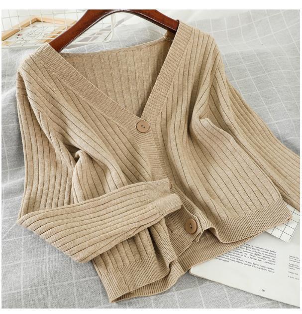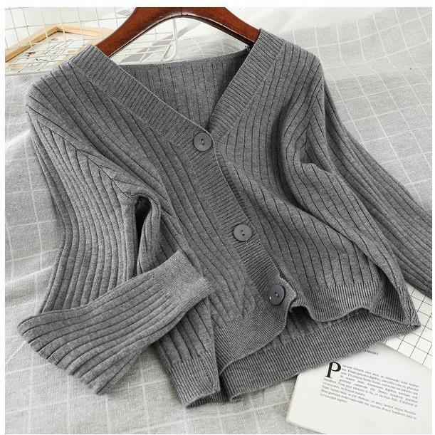 2022 새로운 가을 스타일 겉옷 부드러운 스타일 짧은 느슨한 v 넥 스웨터 재킷 니트 스웨터 카디건 여성상의스토어 가기