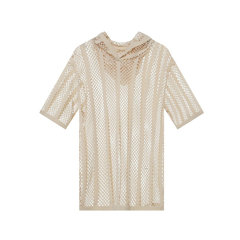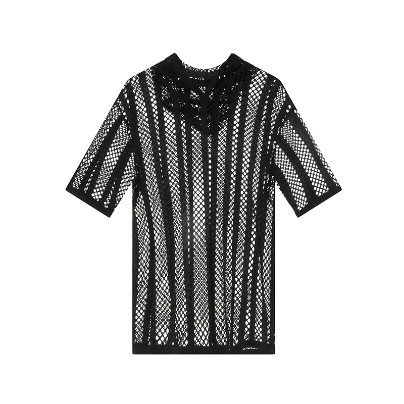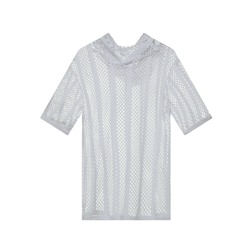 메쉬 패션 남자의 스웨터 청소년 섹시한 단색 캐주얼 짧은 소매 스포츠 통기성 후드 탑 도매