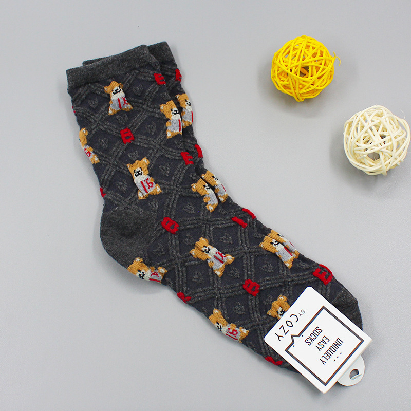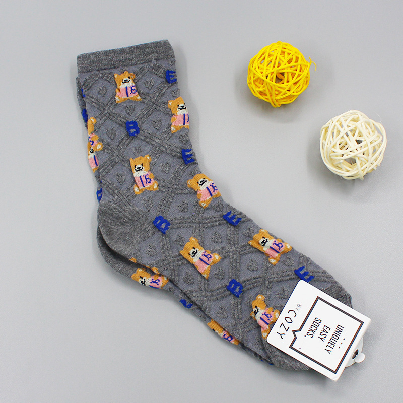 한국 동대문 2022 가을과 겨울 새로운 양각 편지 개 패턴 한국 여성 양말