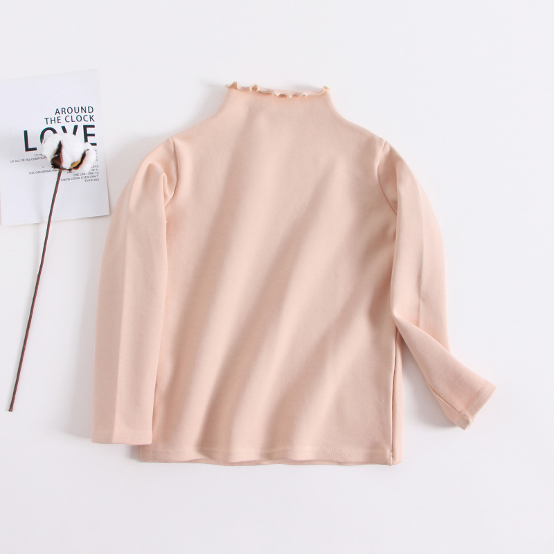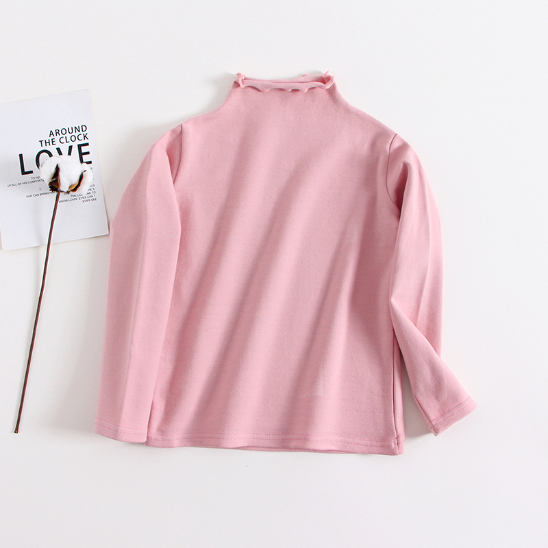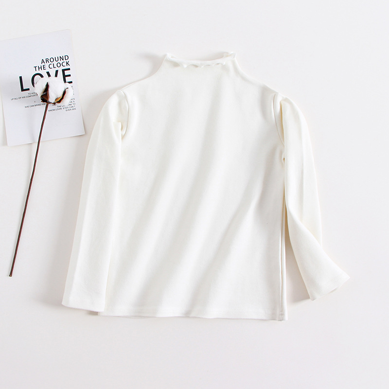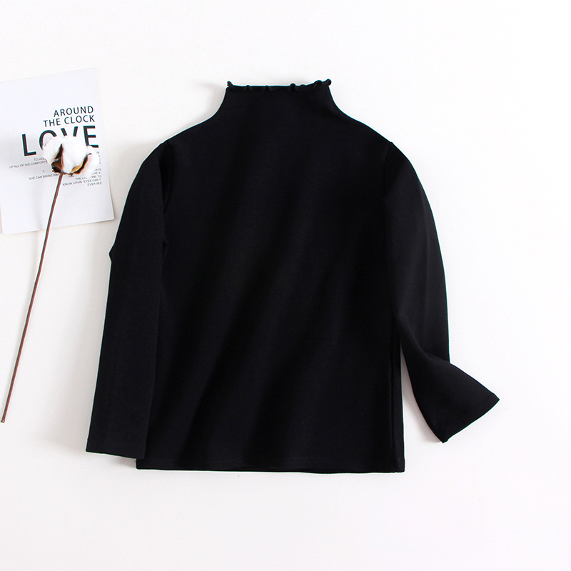 여아 베이스 셔츠 가을 티셔츠 우드 이어 하프 하이 칼라 아동용 퓨어 블랙 긴팔 베이비 화이트 내부 탑