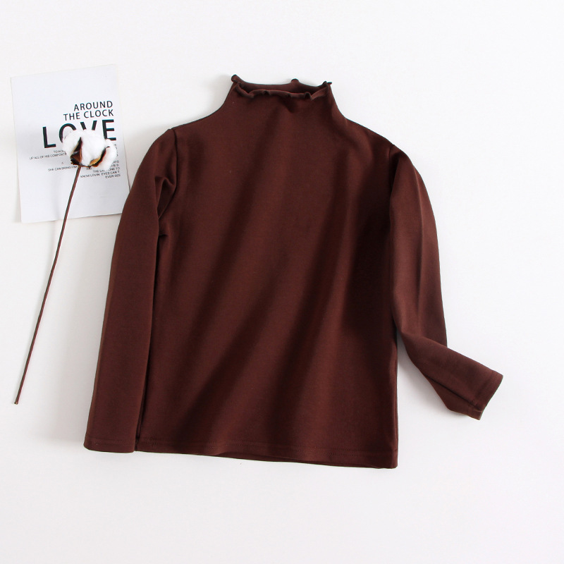 여아 베이스 셔츠 가을 티셔츠 우드 이어 하프 하이 칼라 아동용 퓨어 블랙 긴팔 베이비 화이트 내부 탑스토어 가기